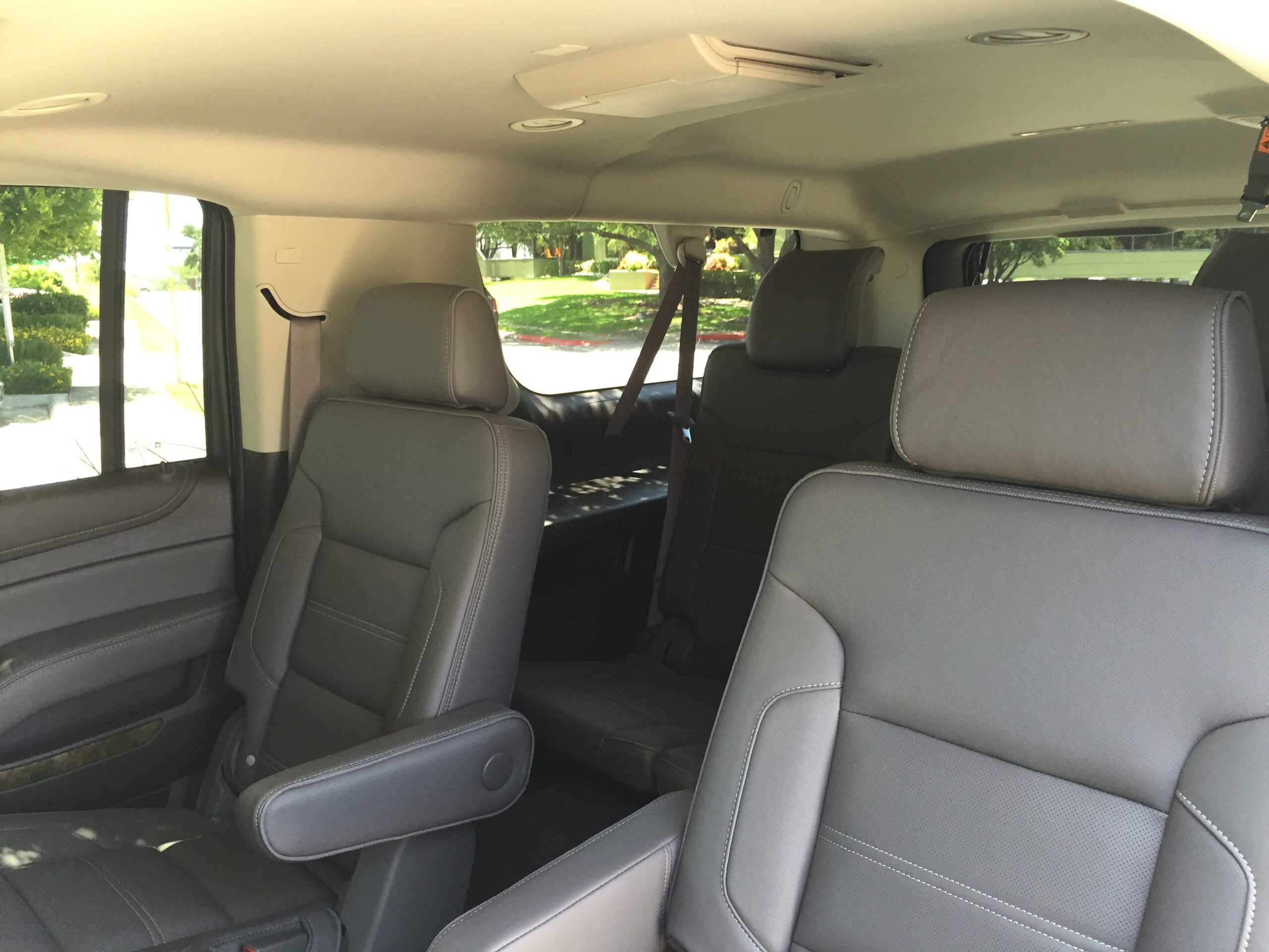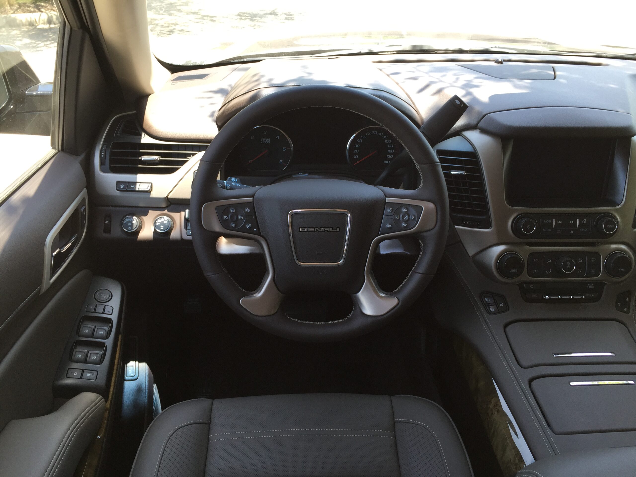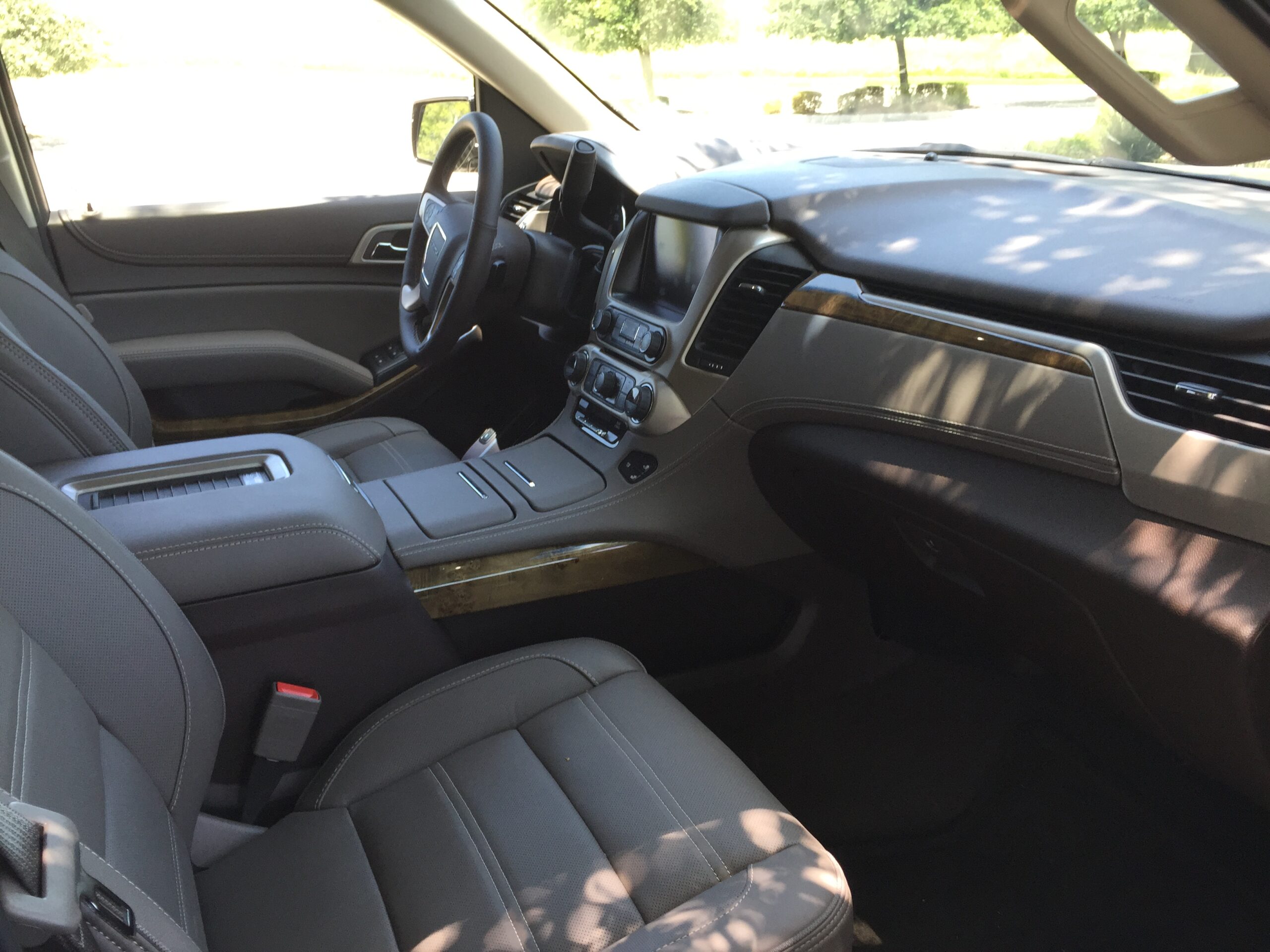 The Yukon XL Denali is a luxury vehicle, so the interior is what you expect. Comfortable leather seats that almost feel like you’re sitting in a recliner at someone’s house. You sit up high in the driver seat, enough to be able to see a truck driver’s face when driving next to an 18-wheeler on the highway. Big cars and trucks are often referred to as “land yachts”, but the Yukon XL Denali feels more like a Navy battleship.