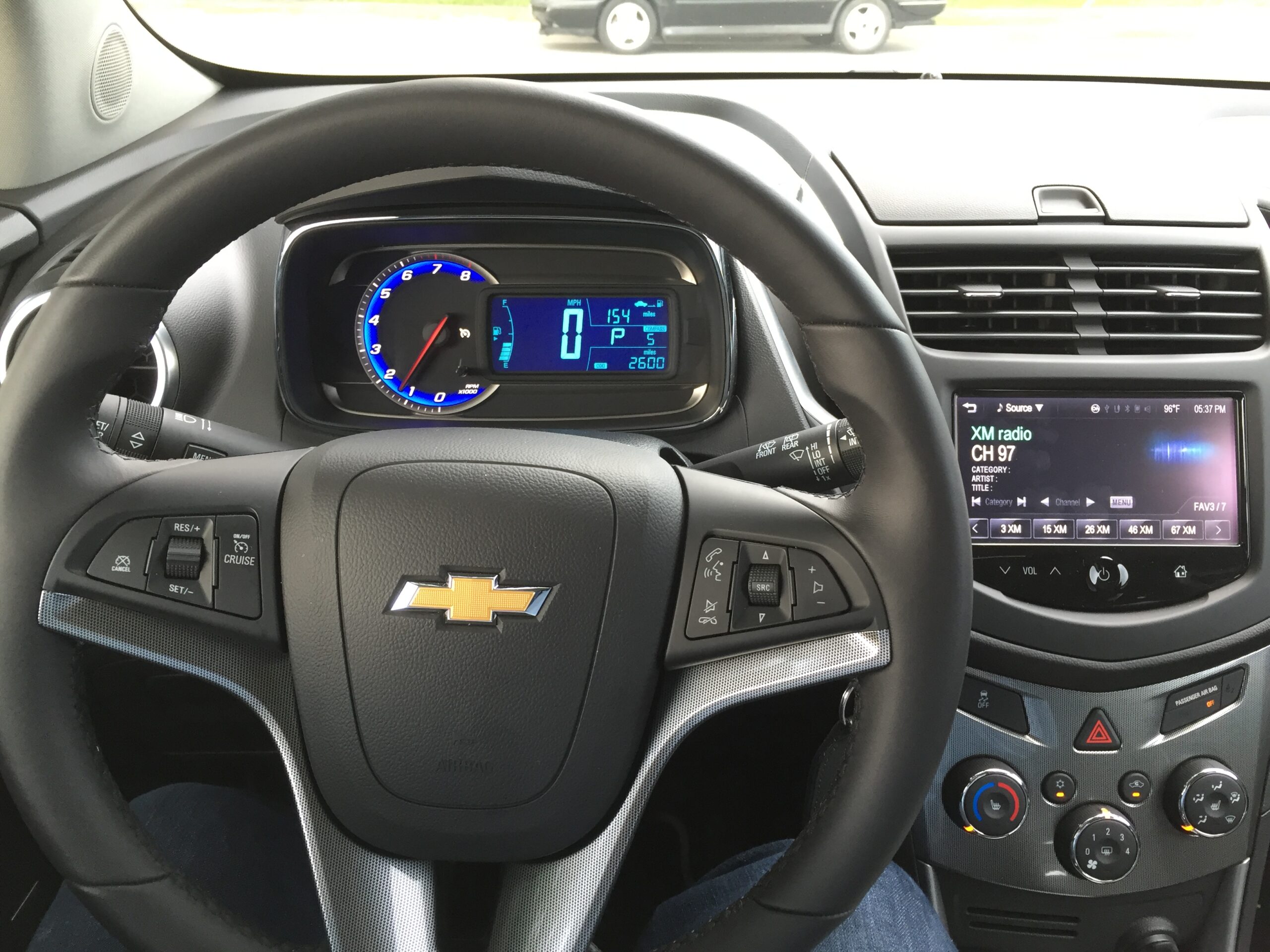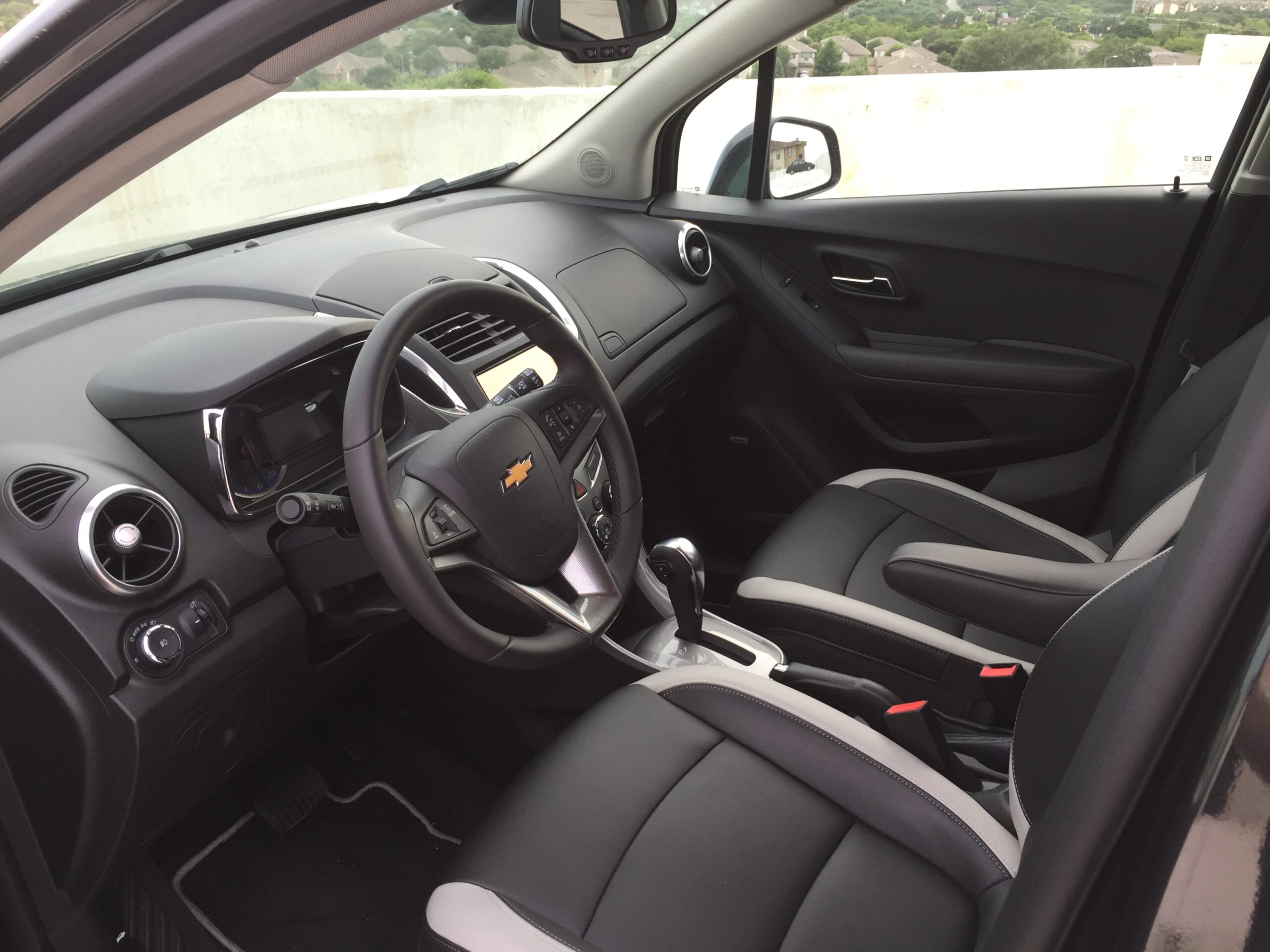 The interior sort of reminded me of the Chevy Sonic, only more grown up. Instead of the funky gauge cluster that you get in the Sonic, you get a more formal dashboard and touchscreen display in the center console. Three cup holders lined up in-between the two front seats to allow people riding in the front, or back, easy access to their drinks. My favorite thing about the interior, and I wish more vehicles would bring back, was the driver side armrest. The Trax’s height means that it is very easy to get in and out. No need to fold yourself in order to climb in and out, just open the door and slide in as if you were sitting on a low bar stool. The electric seats give you an almost infinite variety of seating positions, and combined with the armrest the driver can feel like he or she is sitting on a lounge chair they can drive. Very comfortable.