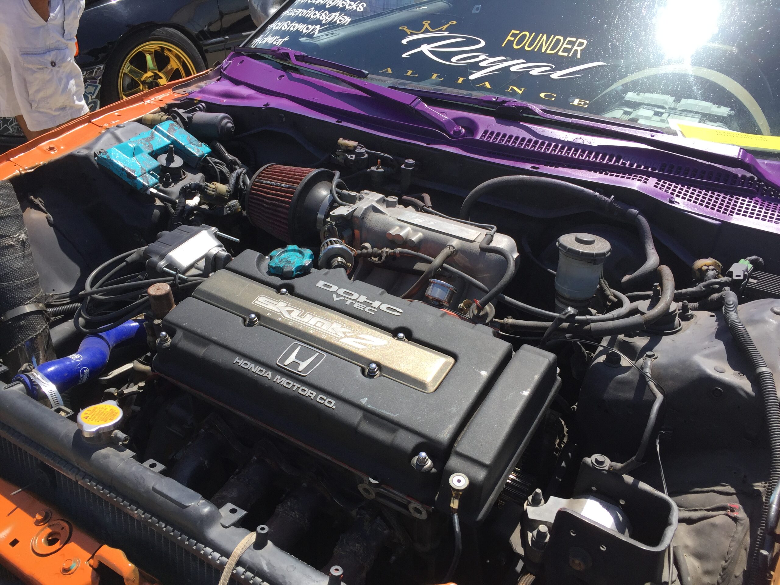 The term “JDM” gets thrown around a lot and it stands for Japanese Domestic Market. This is a reference to cars build in Japan, but is now used as a status label on any car with a Japanese auto-manufacture hood emblem. I saw more Honda SI’s that in the word Mississippi and they were all lined up neatly. But, there were 3 real JDM cars parked behind the wall of V-TECH and they were beautiful.