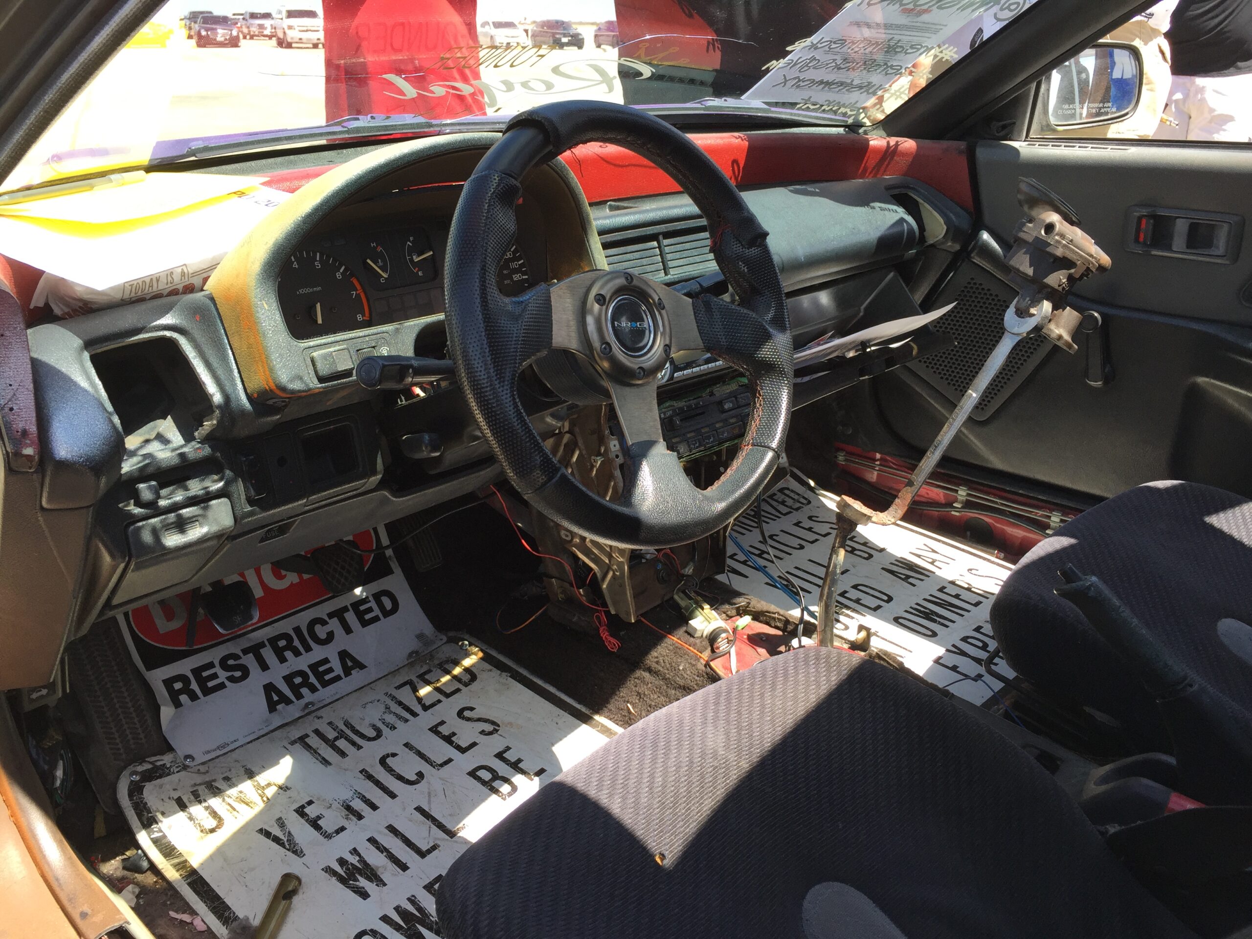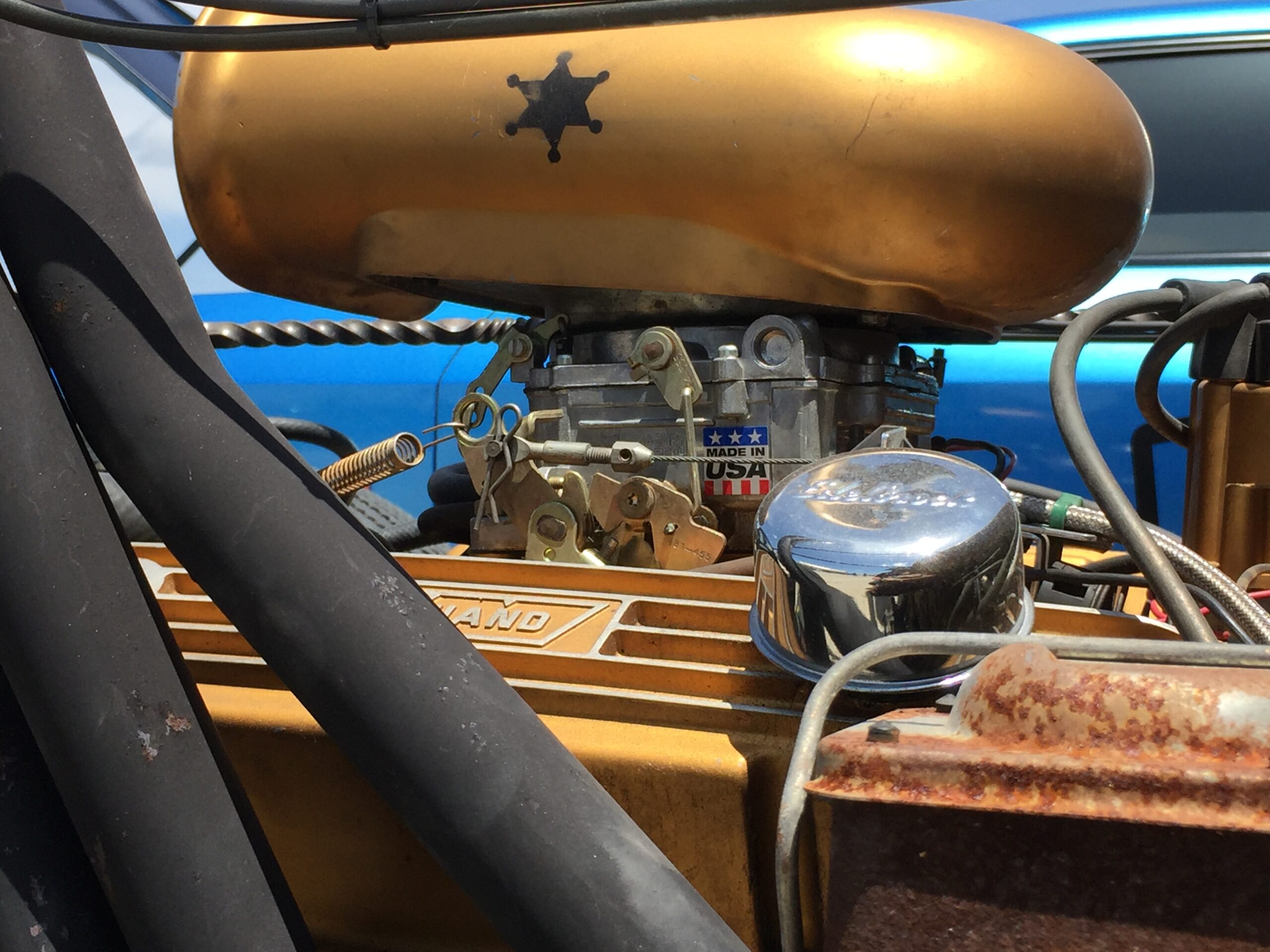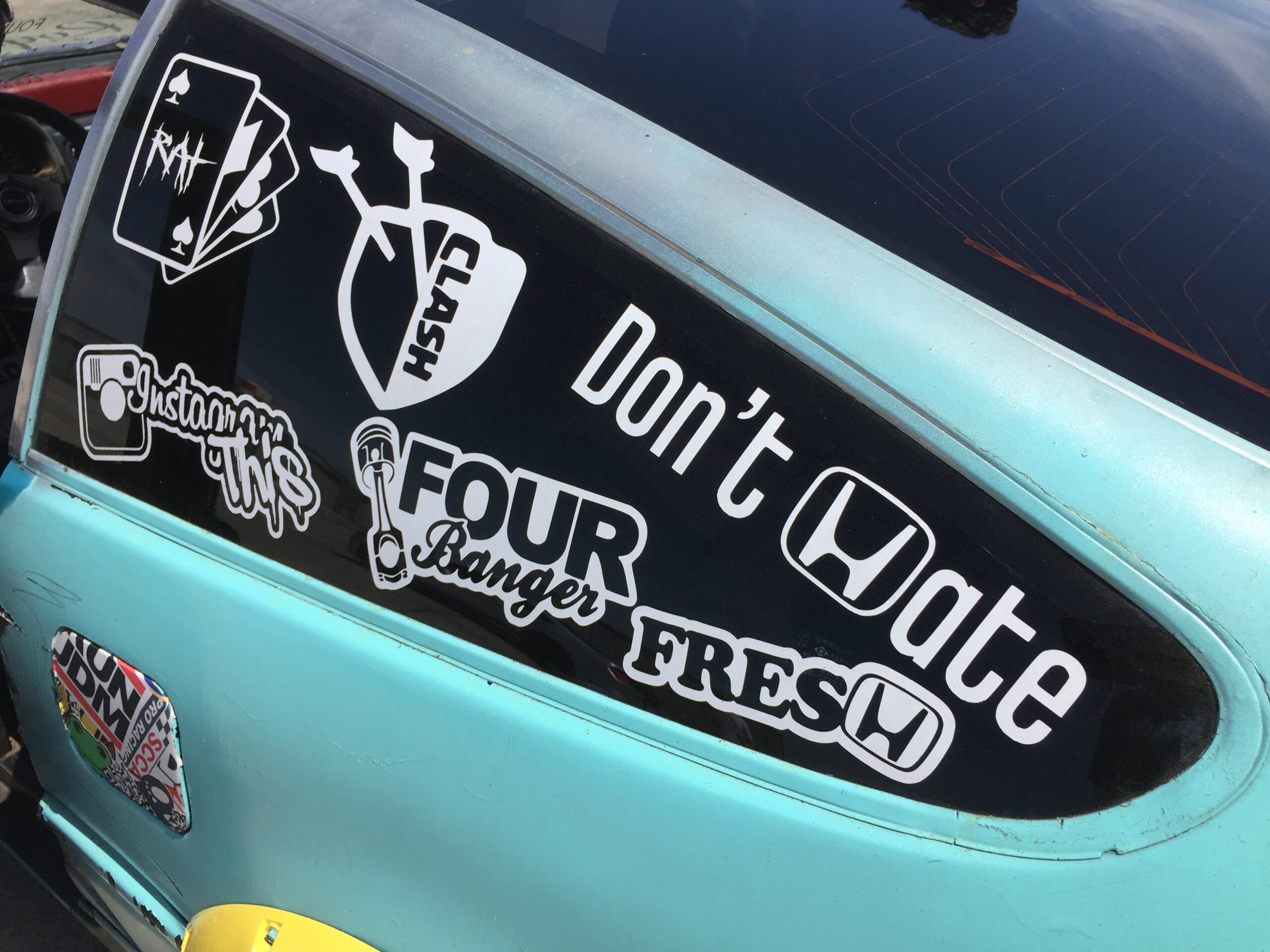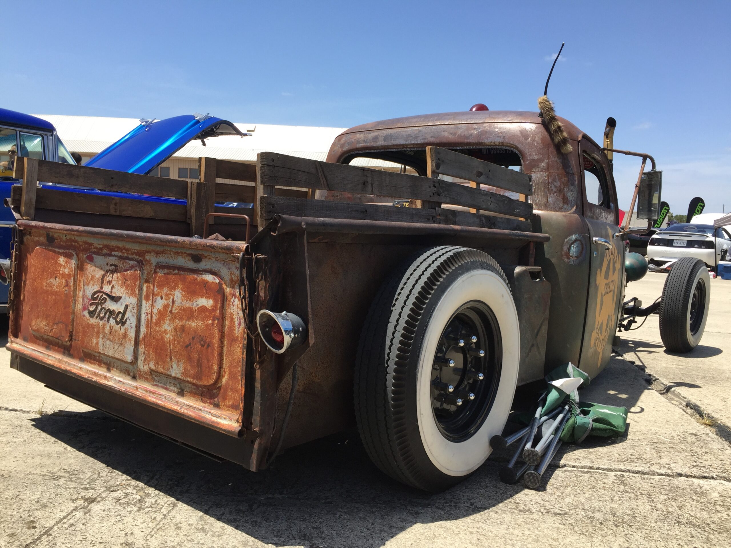 The other rat-rod was a modern take on the subculture. It was a 1991 Honda Civic that looked like it was one pot hole away from falling apart like the Blues mobile at the end of the Blues Brothers movie, but that’s the idea. Bonkers! It had double hinged suicide doors, no front fenders or hood, a worked over engine, and details galore! I could walk 20 laps around the car and find a new detail each time. I couldn’t find the owner but the car had club decals on it. The founder of Royal Alliance, if you’re reading this… nice ride.