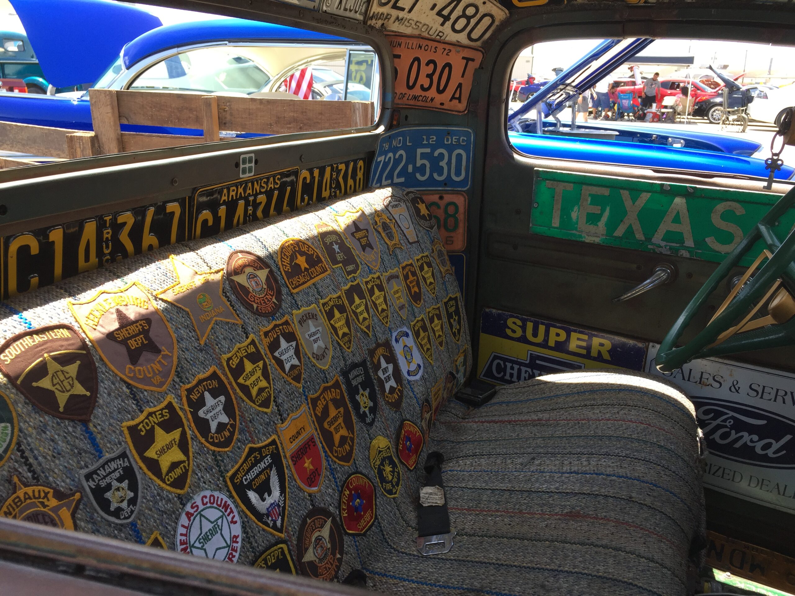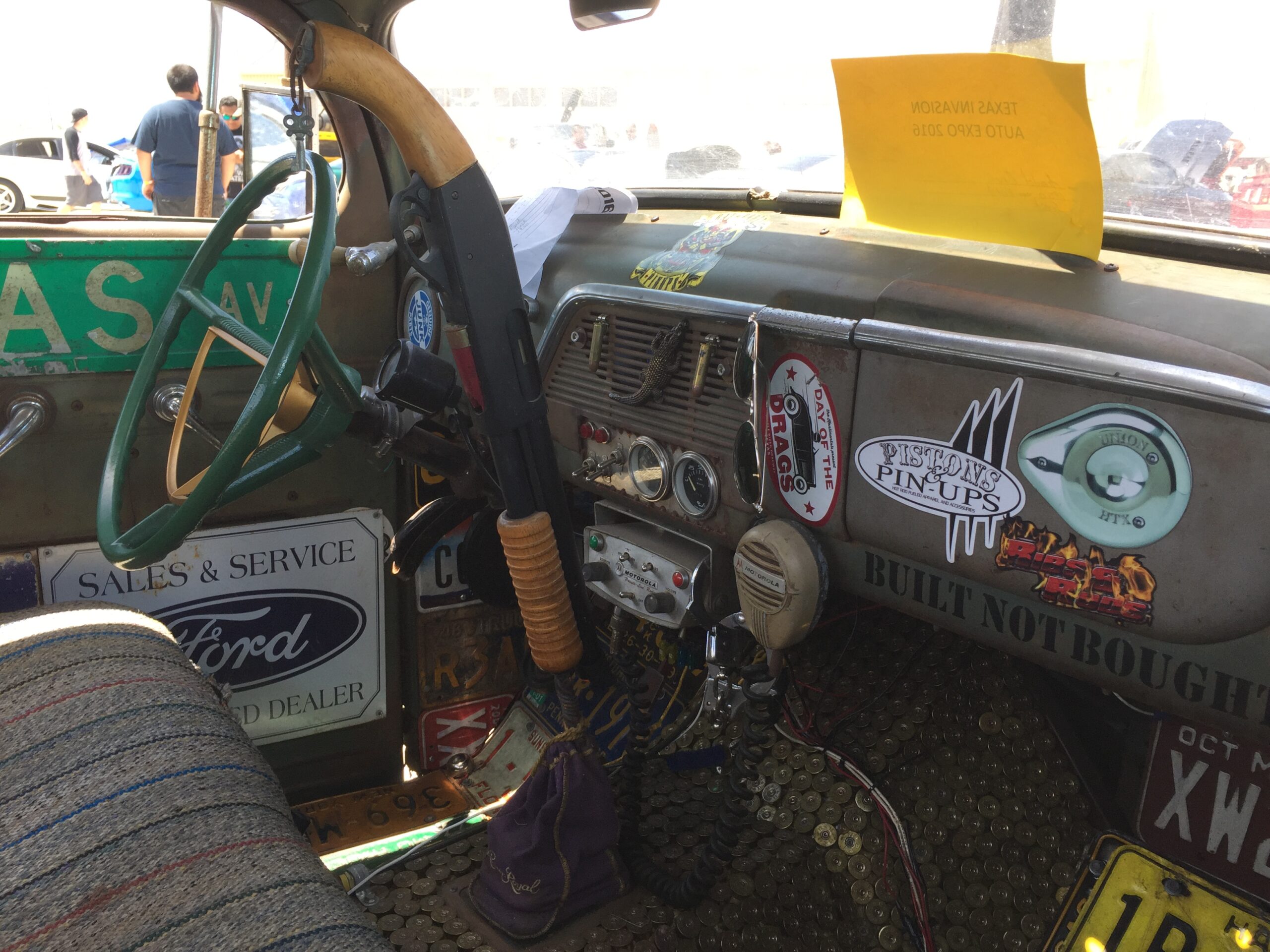 There were two rat-rods at this event and each one represented a different generation in style. One was a traditional rat-hot truck with a law enforcement theme. As with any rat-rod, the art is in the details. Cherry top on the roof, souped small block with twin stacks, a seat with multiple badges sewed in, floorboards made up of shotgun shell brass, and oh, a sawed-off pump action shotgun for a shifter! This was one bad-ass tribute to law enforcement. Must be quite a thrill to go chase punks in.
