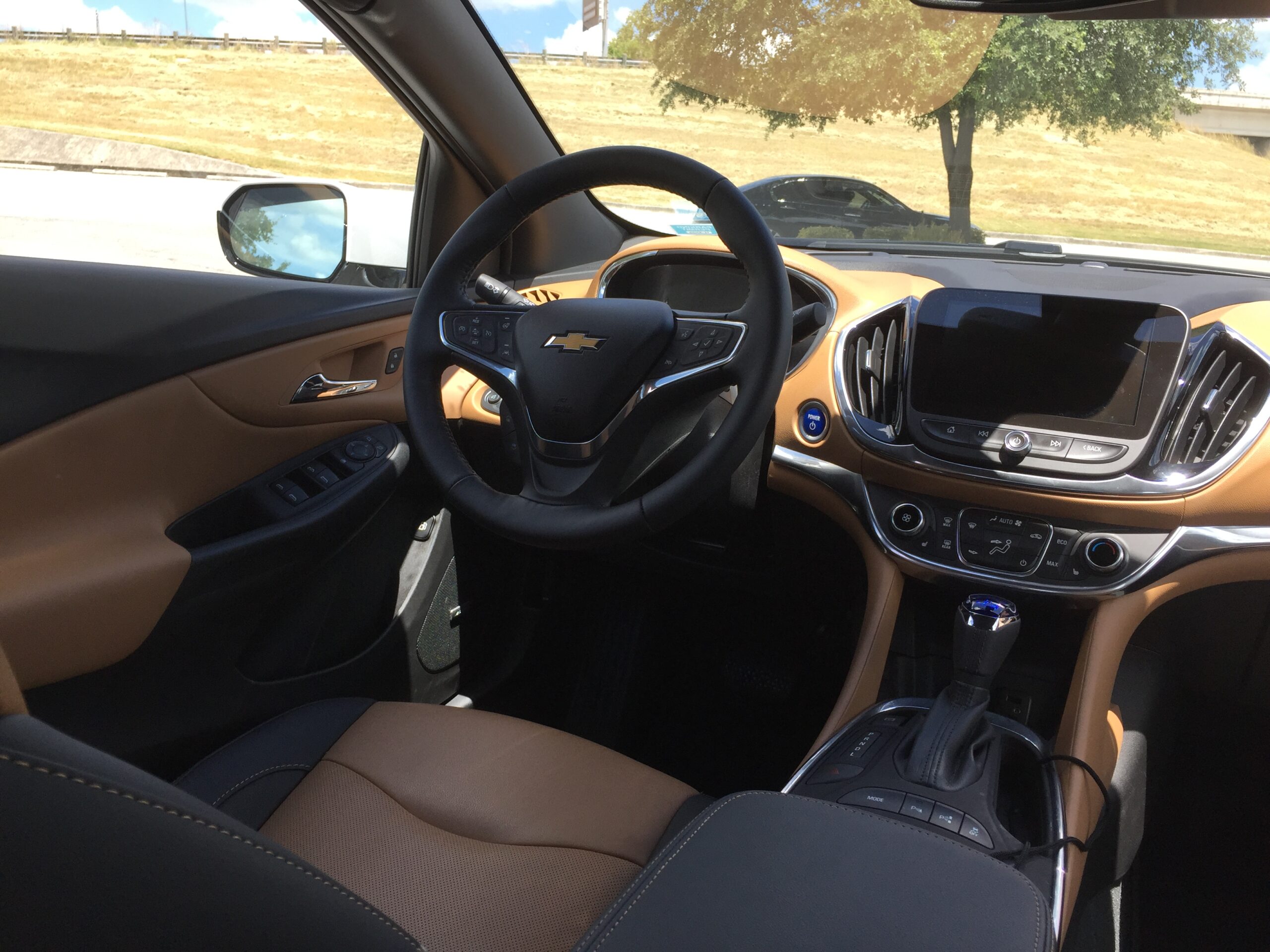 Okay, so the 2017 Volt has a 1.5-liter gas engine that produces 149hp, and an 18.4-kWh lithium-ion battery to power the electric drive and cranks out 111kw. Together they give the Volt 294 lb-ft of torque, which you can really feel when you put your foot down while using the electric motor. The 2017 Volt has a range of 53 miles on its electric battery which extends the overall range per tank to 420 miles. The ‘Regen on Demand’ is a feature that really impressed me. It’s a paddle the sits behind the left side of the steering wheel and it works like a brake you control with your hand. When using this brake you are turning the wheels into generators, converting kinetic energy into a power source for the Volt’s batteries. It’s sort of like turning down the brightness on your smartphone screen to extend the battery life for as long as possible.