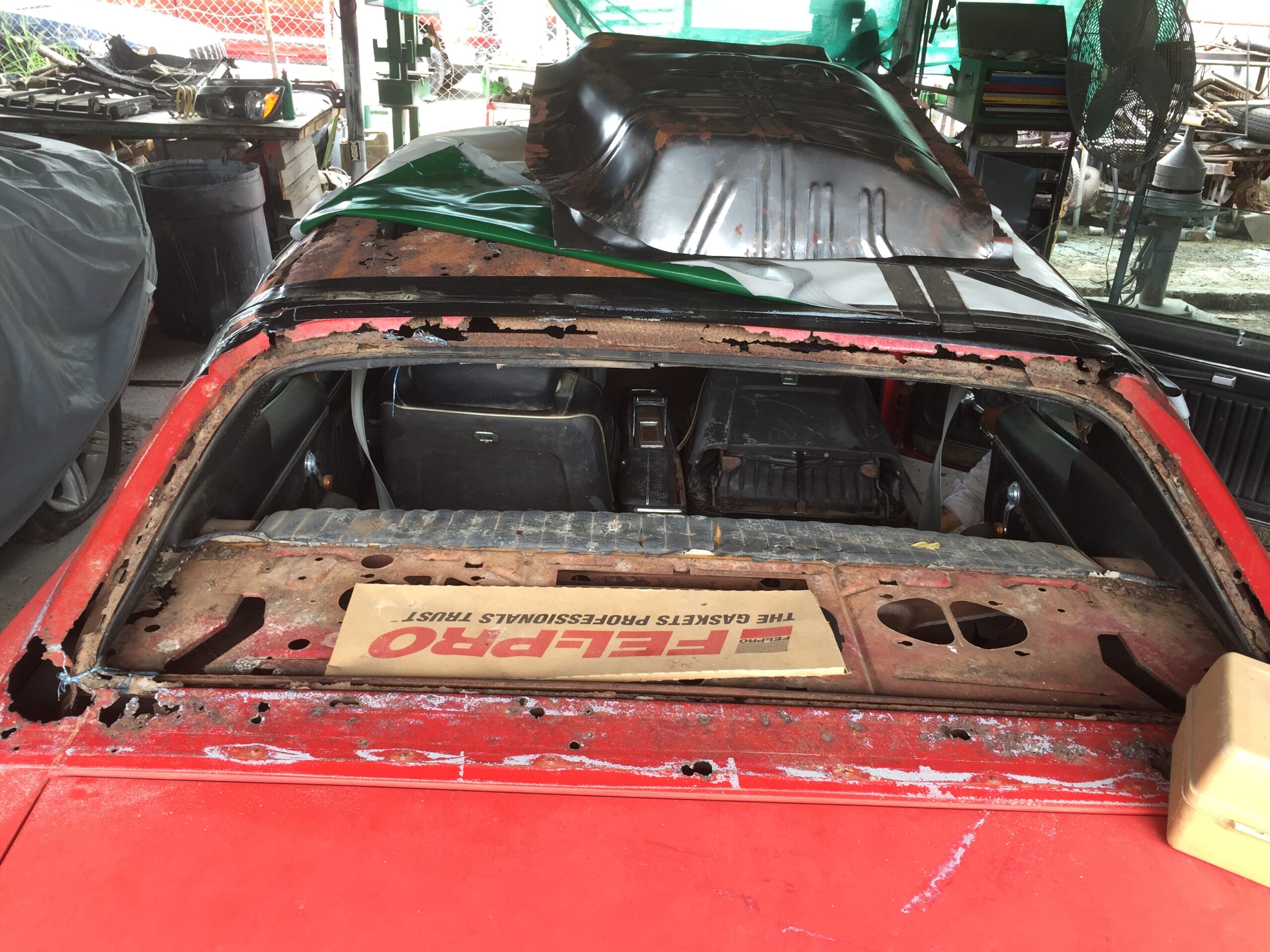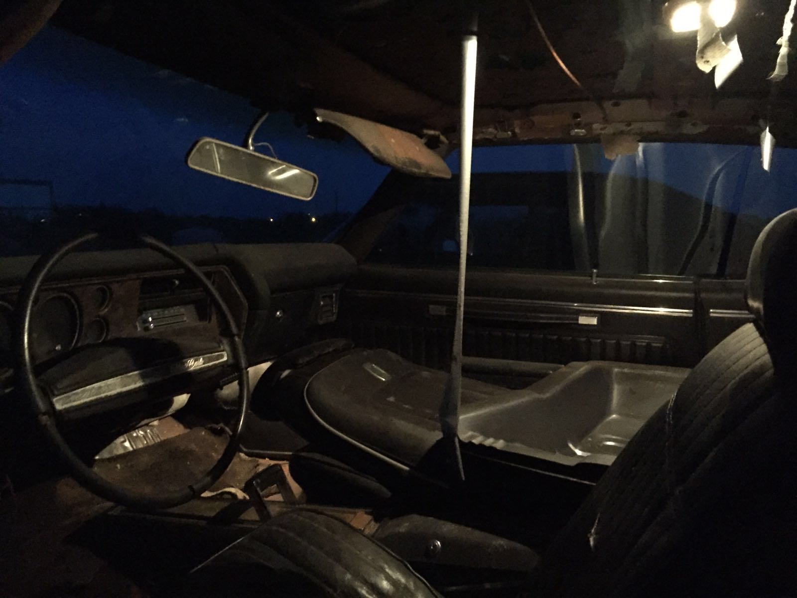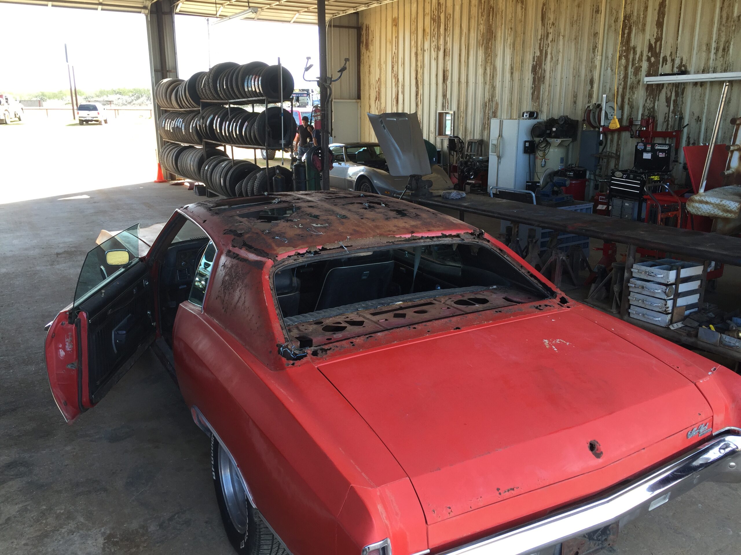 Since we became the new owners the Monte Carlo has been fitted with a temporary top to keep it dry from the elements and restoration started this past weekend. We thought about cutting the top and making the first convertible Monte Carlo SS, but then we found out they made less than 3,300 SS package Monte Carlos in 1970 and immediately decided to restore instead.