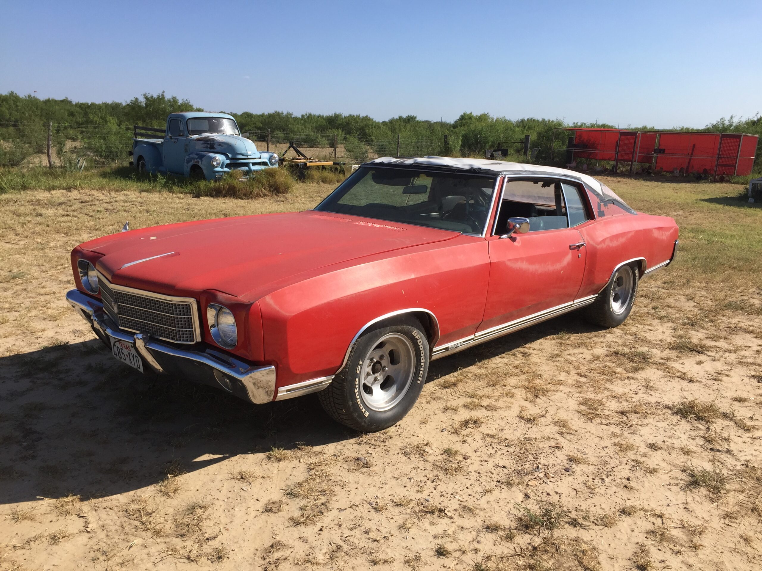 The car was parked on a lawn in front of a road service repair shop in a little town between Laredo and San Antonio, Texas. I was probably 15 or 16 years old the first time I spotted it on the drive to San Antonio, TX. I knew it was a Monte Carlo because of its rear fenders, but a blue tarp covered the rest of the car so I couldn’t get an accurate model year. It sat next to a horse trailer and a parted out late 70’s C3 Corvette shell. For years I saw this car while traveling between cities. It became a landmark to me whenever I made the trip. Seeing the Monte Carlo meant that I was halfway between both cities, which is always a sigh of relief because the 150 mile journey is just a mind numbing interstate snooze.