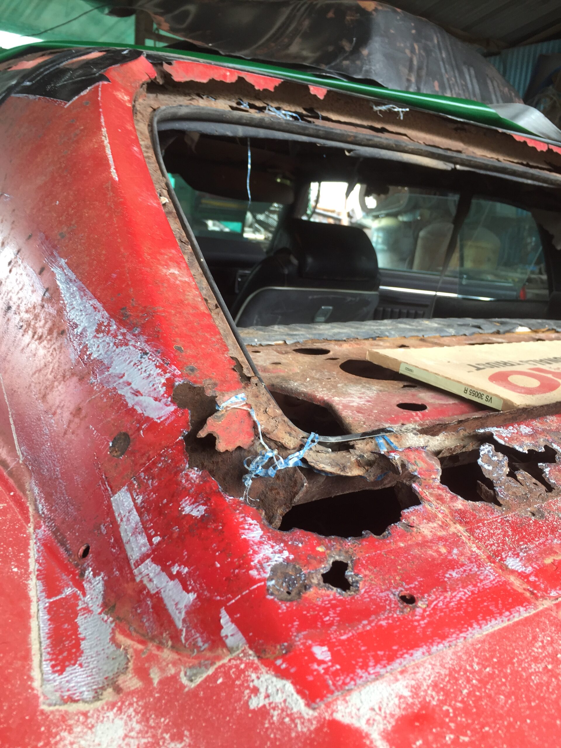 The roof rust happened during the first owner, who was an elderly man who parked it under a mesquite tree for 15 years! That’s where all the rust damage came from, and why it was covered for so many years. Now came for the question I was nervous to ask, “Is it for sale?”