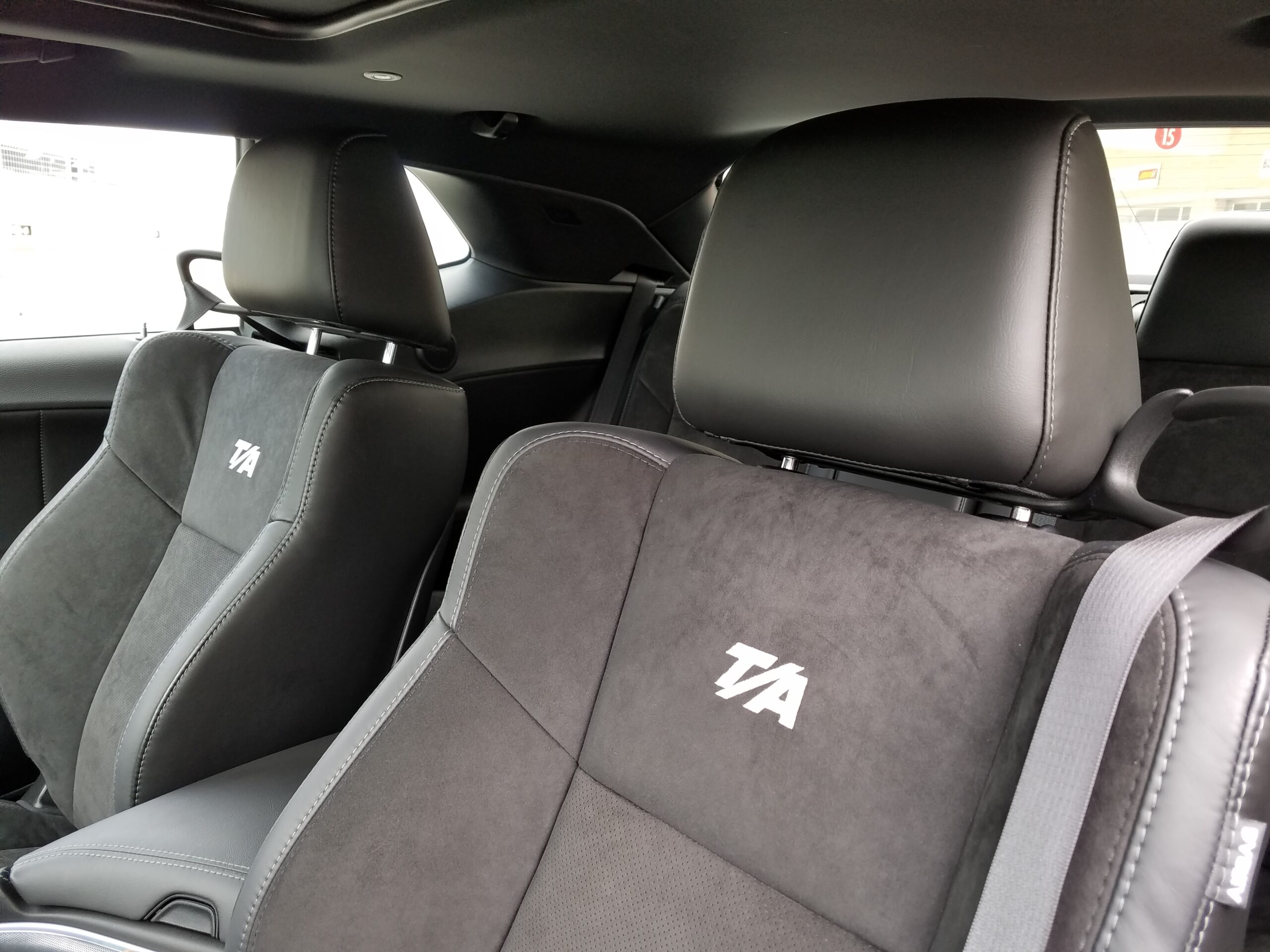 The standard Challenger T/A provides a 5.7 liter, 375 horsepower Hemi V8, with a standard 6-speed manual. A standard manual – in this segment – is a true throwback; buyers can also option an 8-speed automatic with paddle shifters. The T/A package includes stain black trim, a Hellcat-inspired hood scoop, and ram-air through the headlamp just like its big brother Hellcat. What makes the T/A stand out from the rest of its brothers is Dodge’s Super Track Pack, which lowers the car 0.5 inches, supplies upgraded shocks, high performance brake lining, a 3-mode stability control (with off switch), aluminum wheels, and sticky Goodyear Eagle F1 tires. The cherry on top is a performance exhaust, exclusively for the T/A, that makes it sound like its 1971 at Laguna Seca when the rev needle goes passed 5,000 RPM.