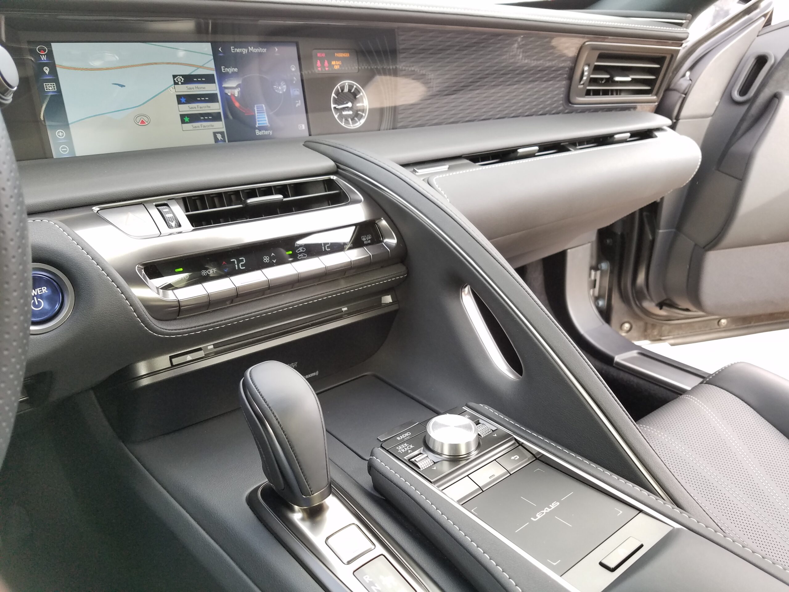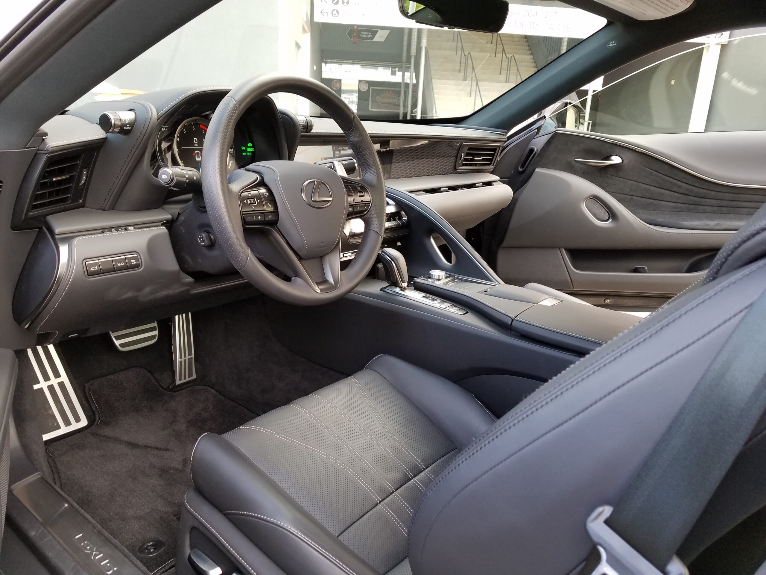 The model we tested was the LC 500H, the hybrid V6 version. There is the LC 500 which carries a 5.0 V8 making 471 horsepower. The hybrid only makes a combined power output of 354 horsepower, with 295 hp coming from the V6 and the other 100 hp from electric motors. Both will do 0-60 in the 5 second area with a top speed of 155 mph.
