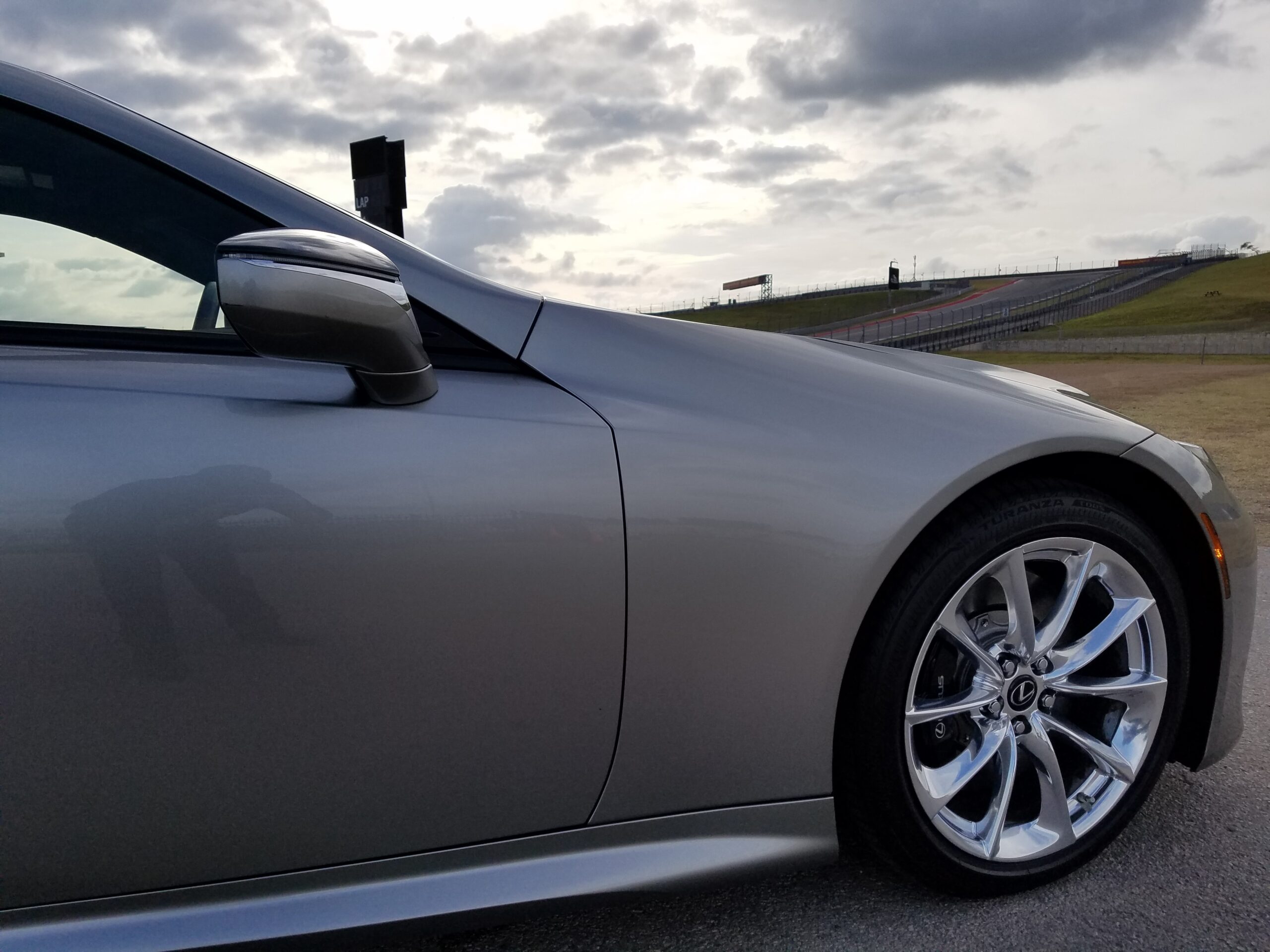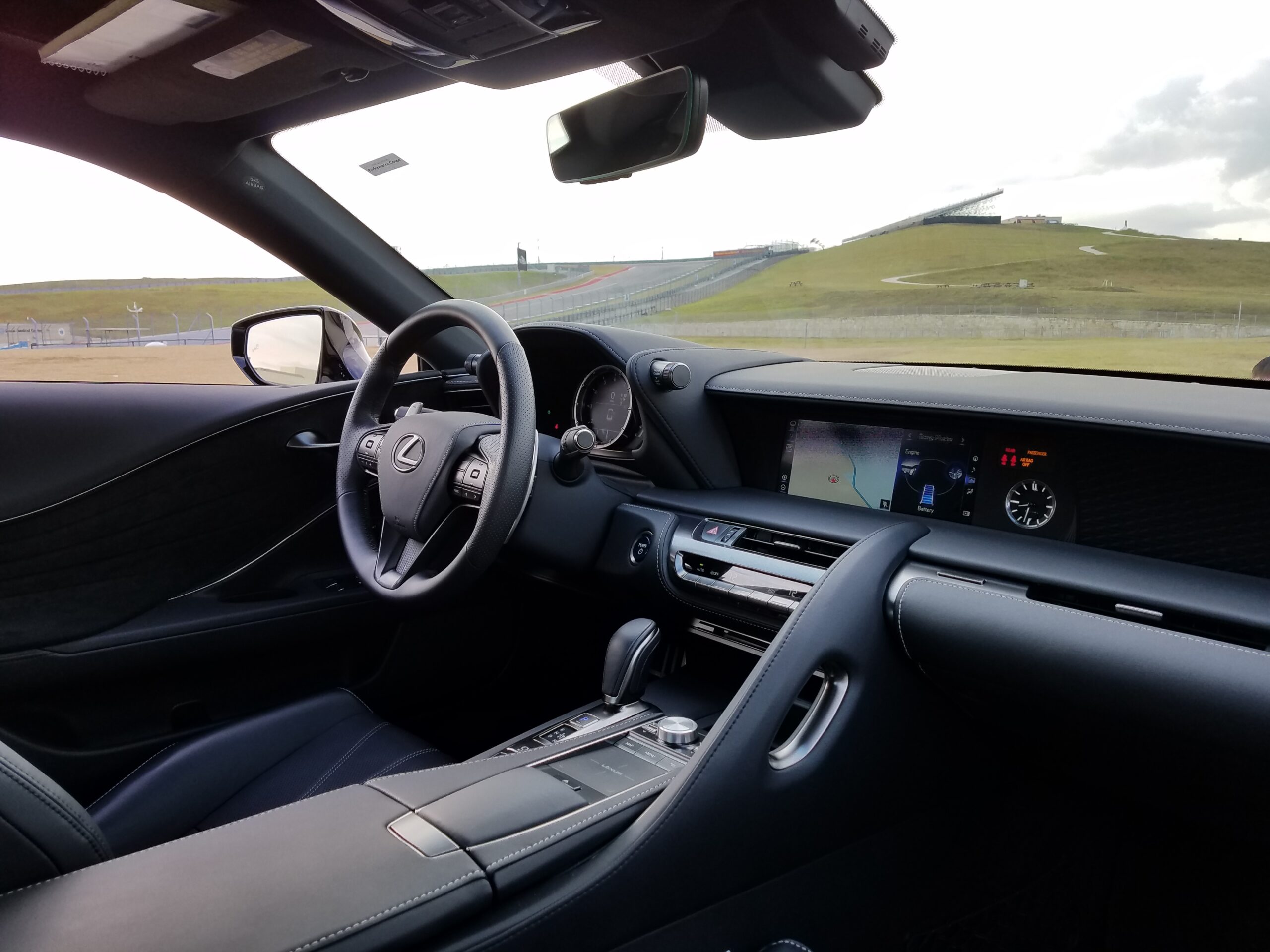 The LC 500H is no slow poke, but it’s no LFA either. I certainly didn’t’ feel like I was blazing a hot lap, and it won’t smoke its rear tires off the line no matter how hard you stand on it. However, it cornered flat through the fast turns. A surreal sensation to be driving a machine that looks like it’s going 120 mph standing still on a race track and being completely relaxed. Just cruising through the slalom course and throwing into tight chicanes at Circuit of the Americas. Felt like I should have been listening to music while testing it. A true GT car.