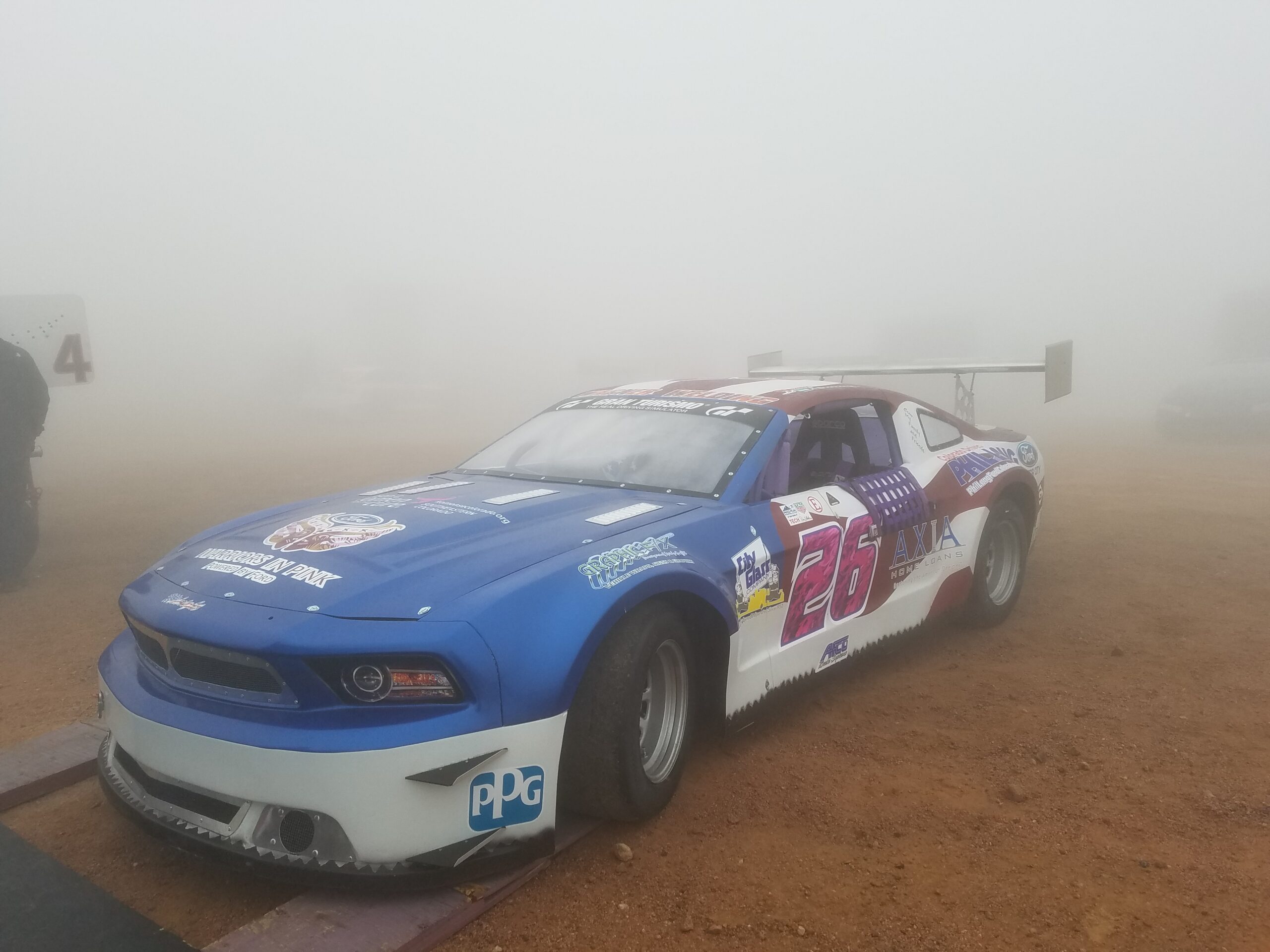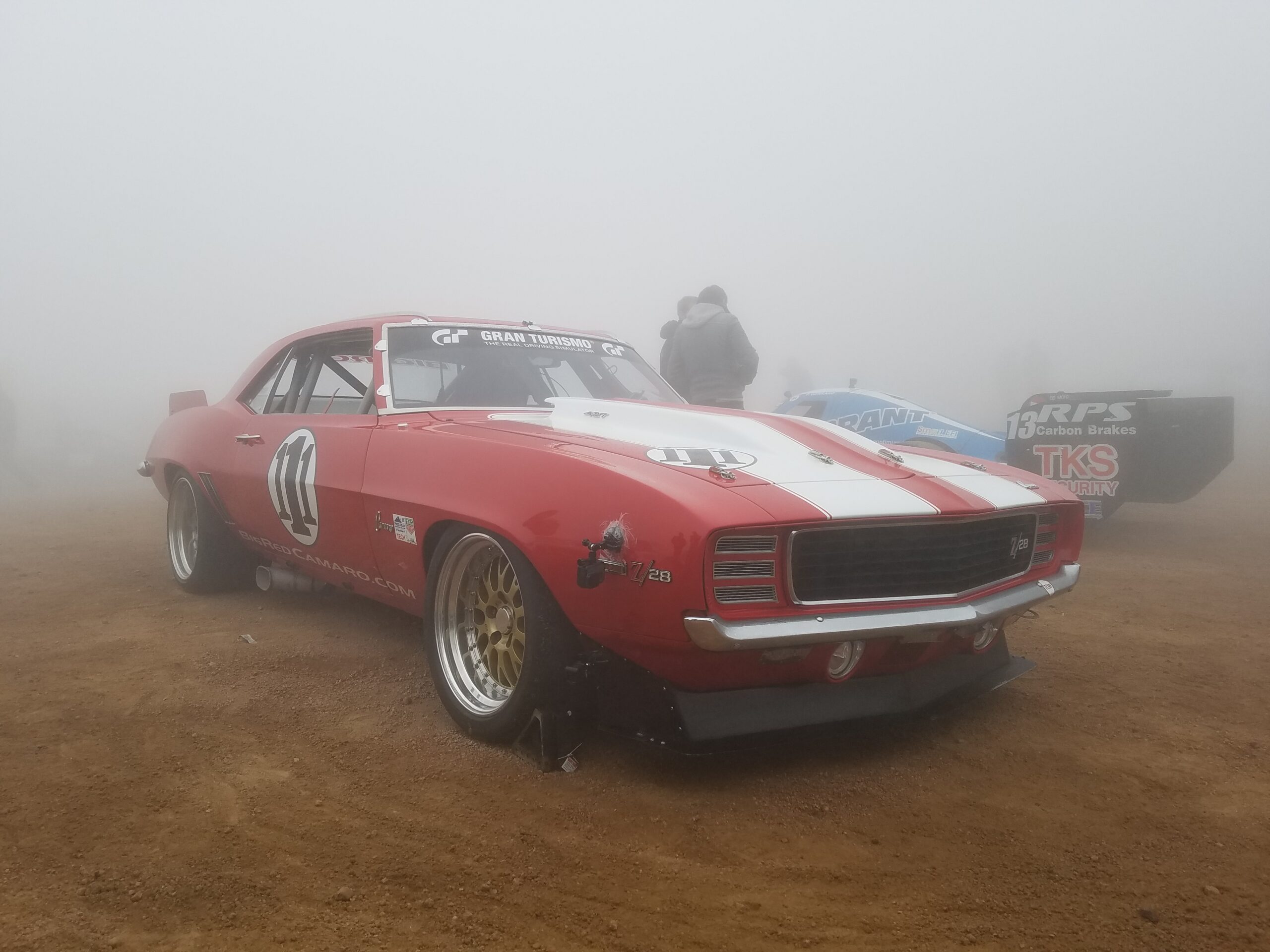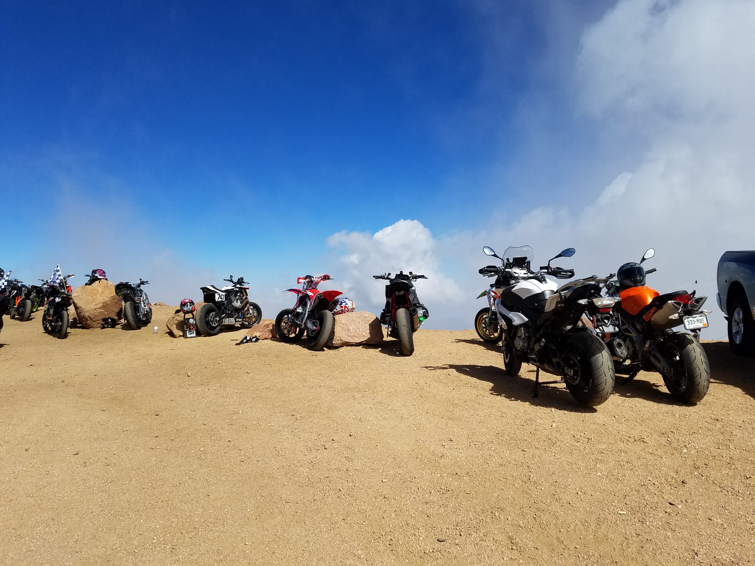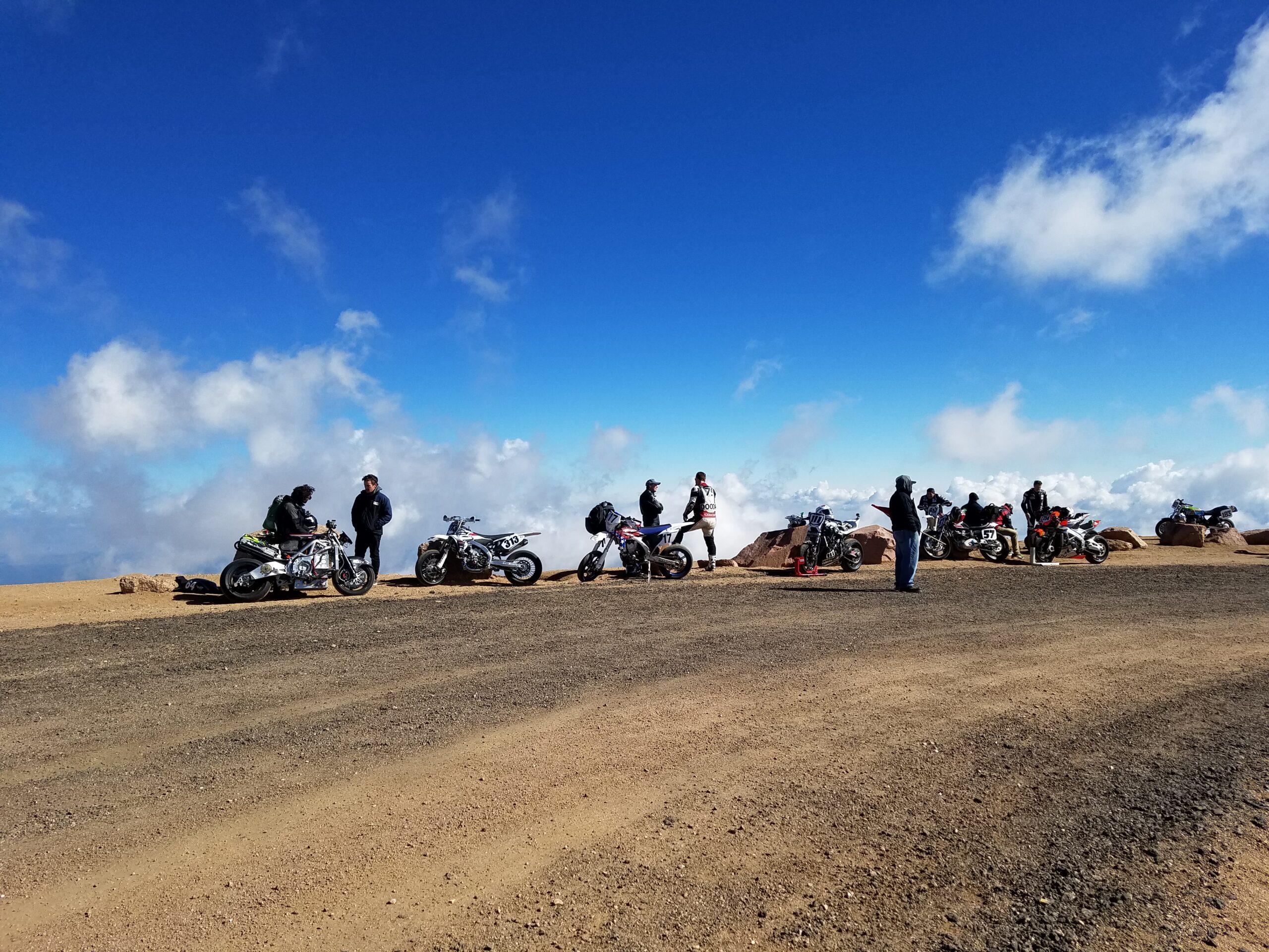 The last five cars at the event had their race cut short when a hailstorm at the summit created another white out and made people run to safety. Hail stones, no matter how little, are very solid when you’re 14,000 feet up. Feels like getting hit with low pressure BB gun pellets.