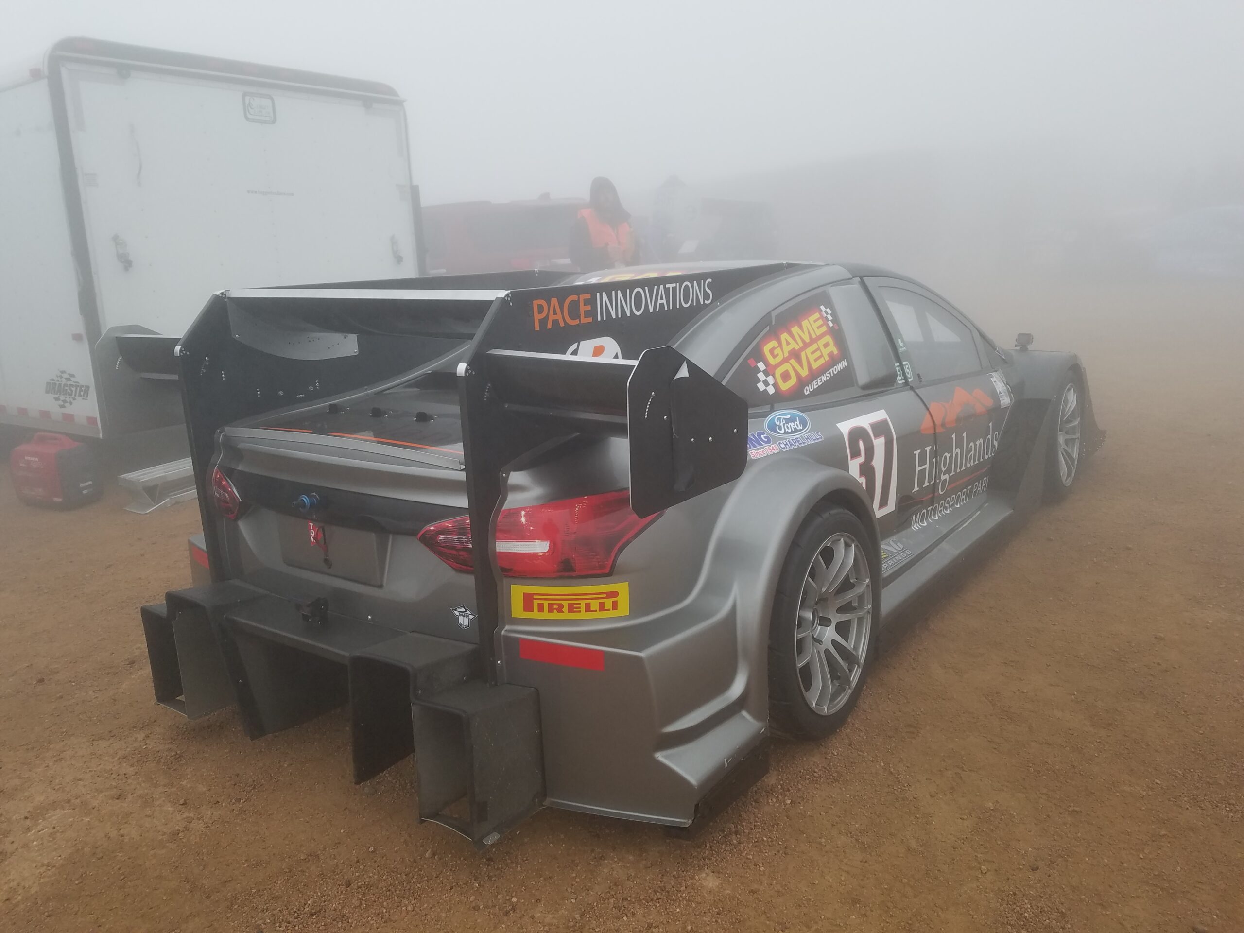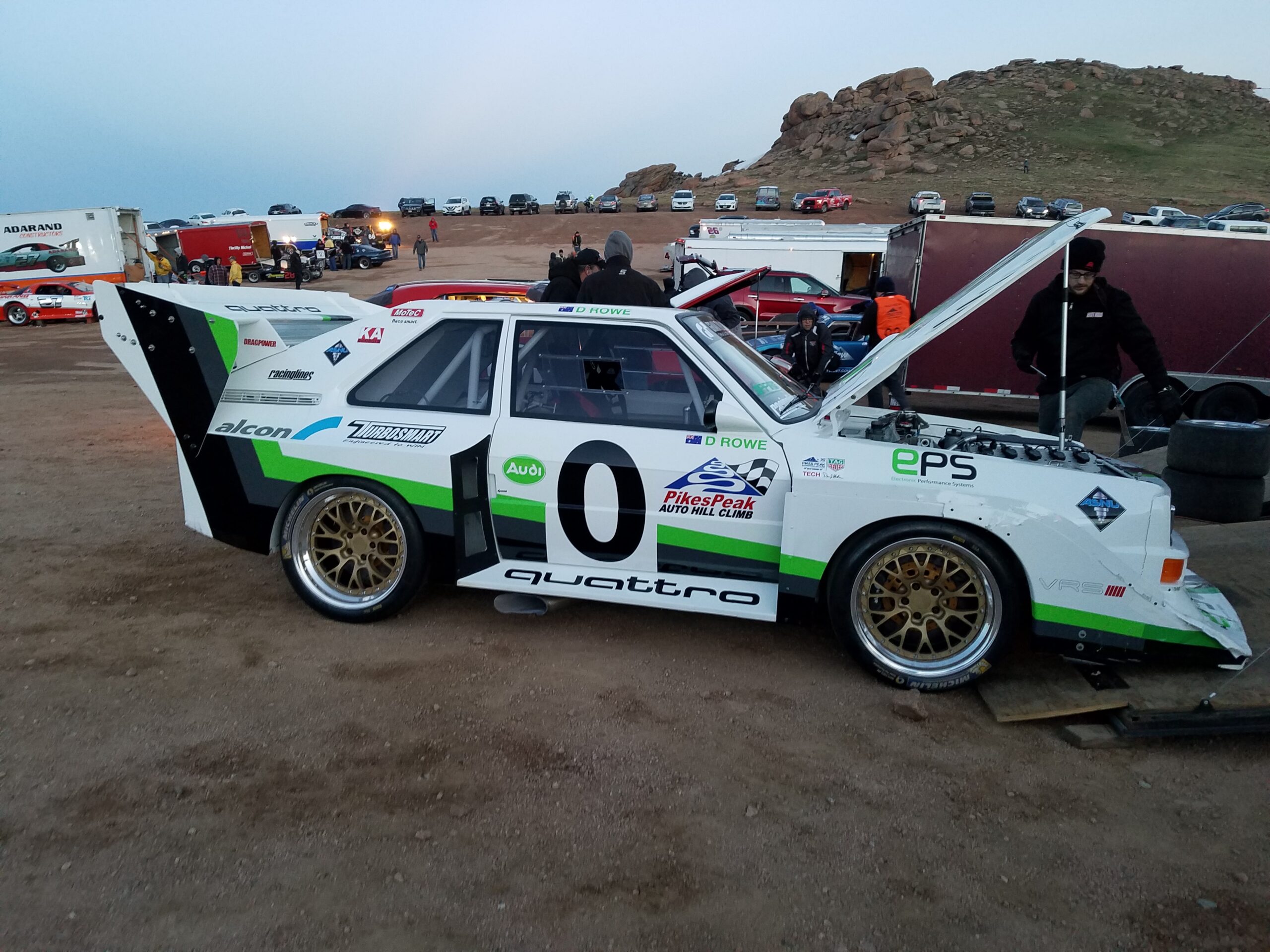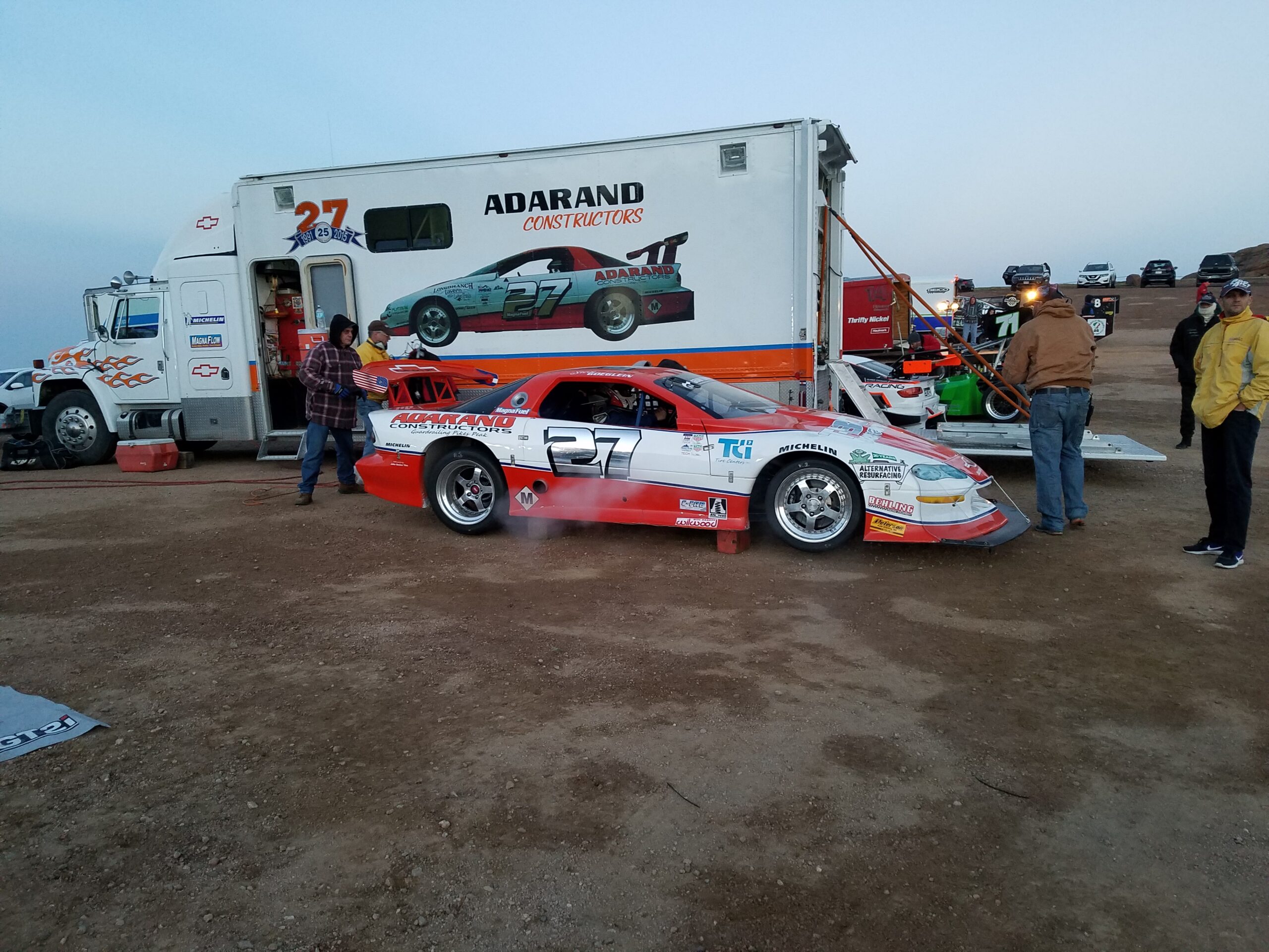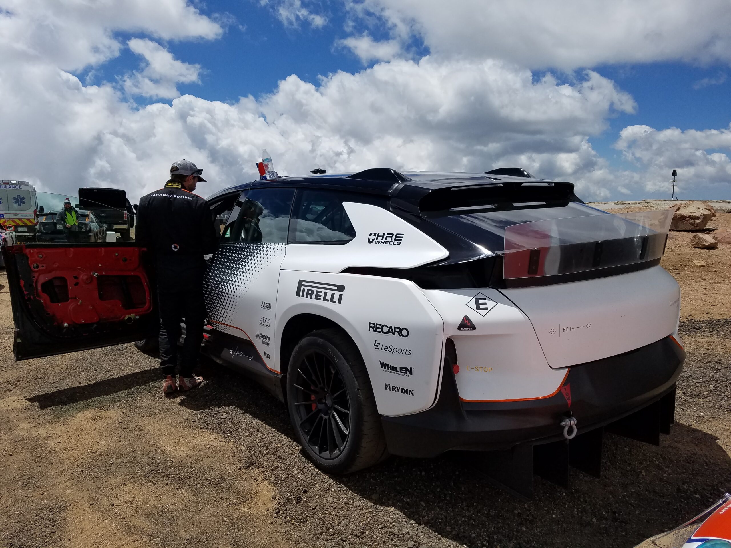 The last five cars at the event had their race cut short when a hailstorm at the summit created another white out and made people run to safety. Hail stones, no matter how little, are very solid when you’re 14,000 feet up. Feels like getting hit with low pressure BB gun pellets.