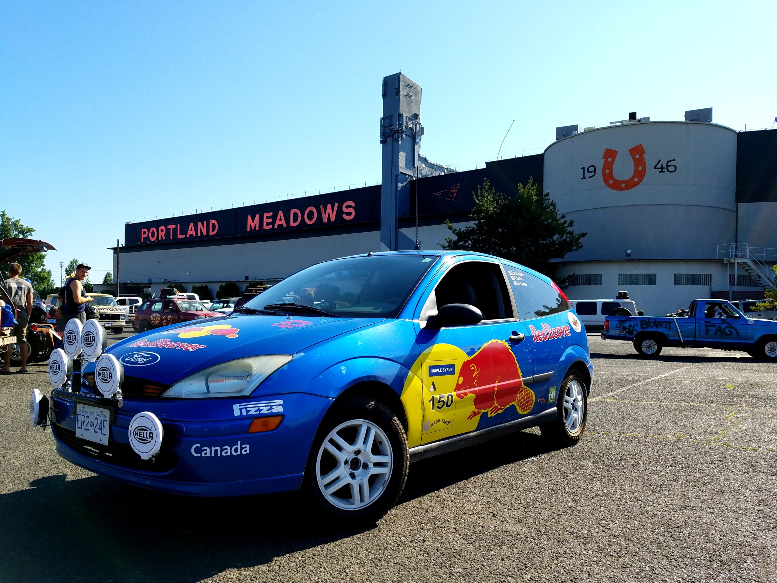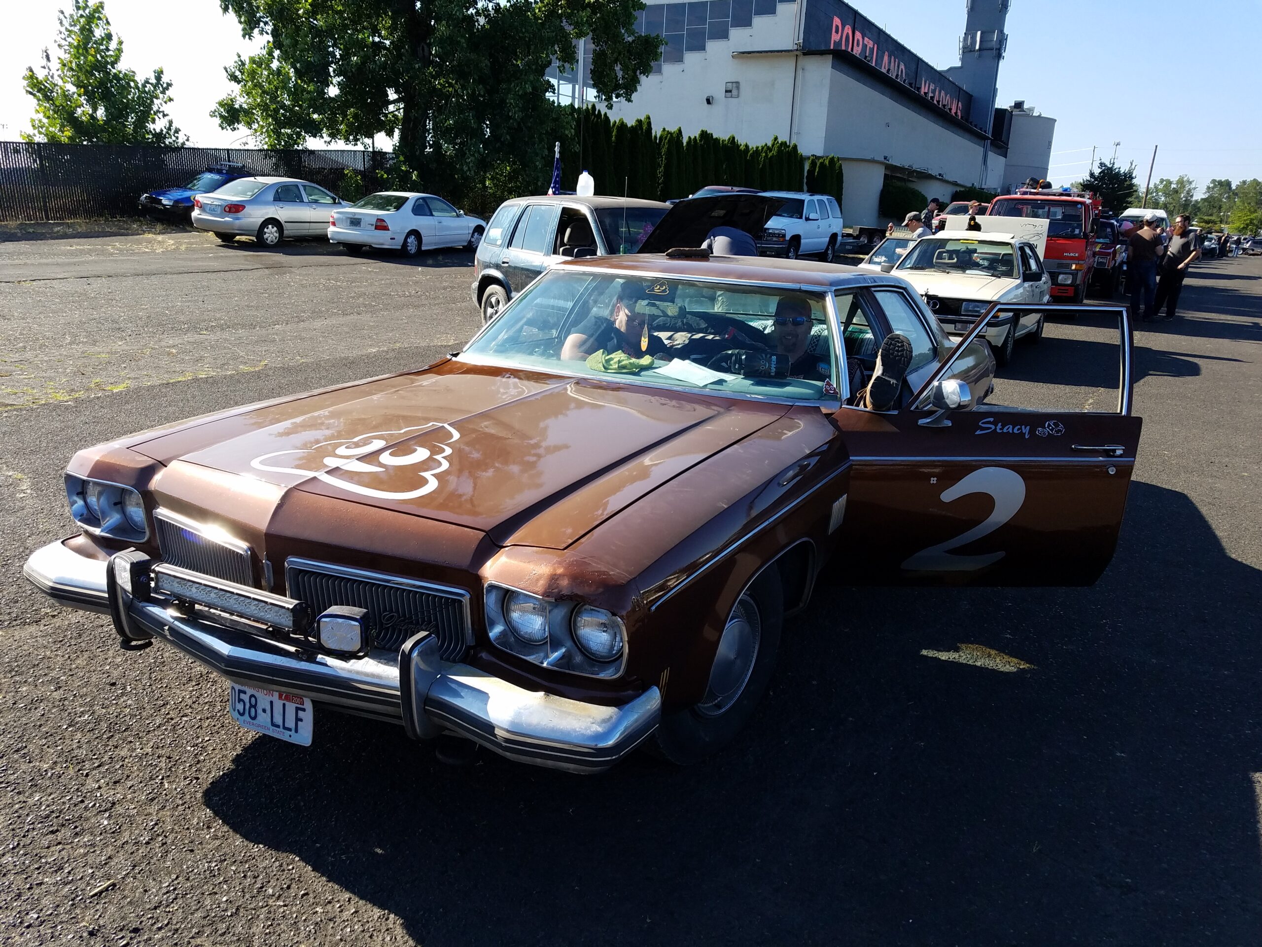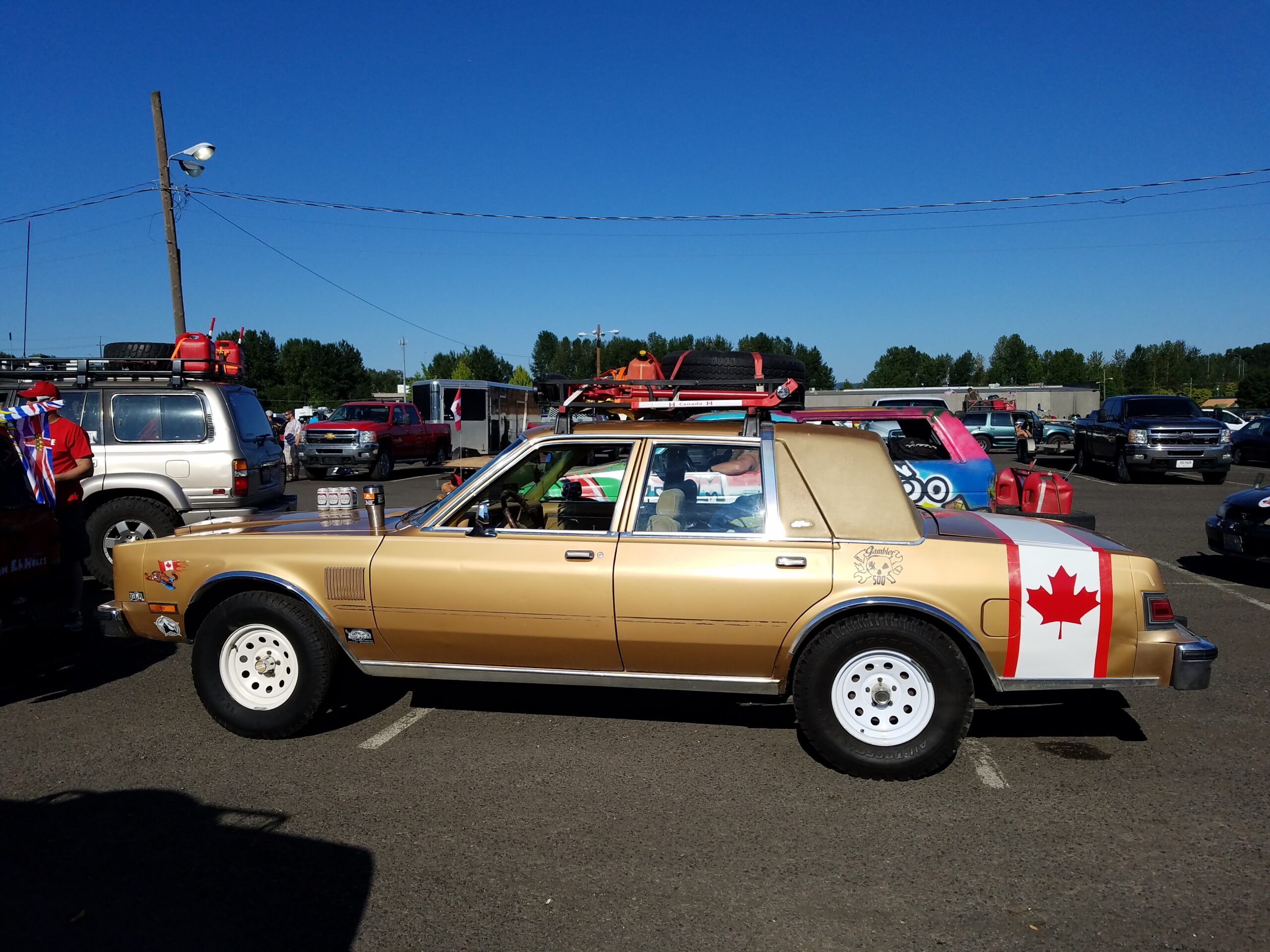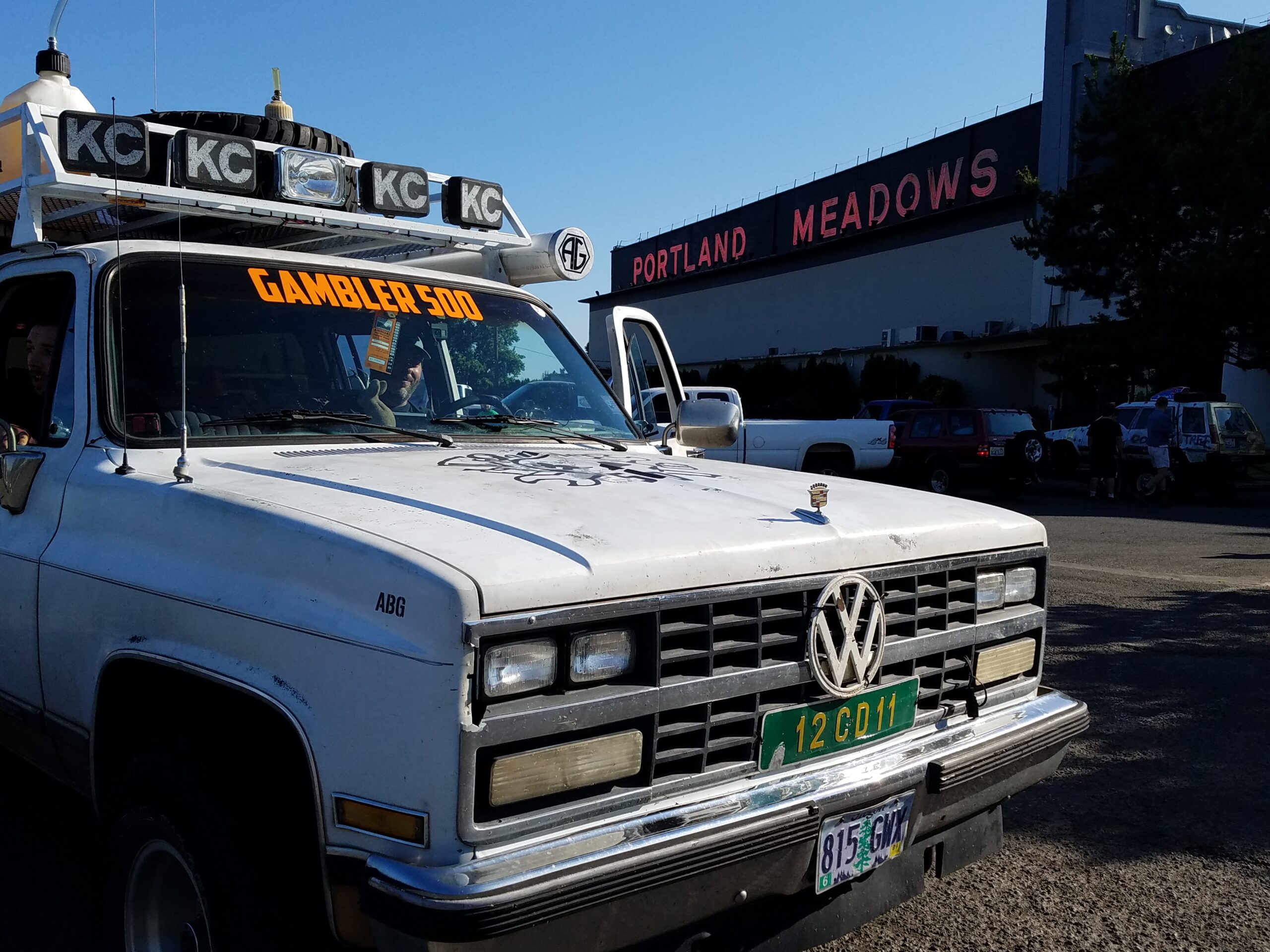 The start of the rally was a symphony of sputtering exhausts pipes, squeaky fan belts, and rough idling engines. Hood slams echoed as gamblers pushed their heaps to the start line. This was the 4th running of the Gambler. In previous years attendance was small. Around 40 teams entered last year, but thanks to social media a record setting 300 was expected to show up at the Portland Meadows horse track to start gambling. We arrived at 8 am and saw that over 700 teams had showed up! Unpresented and unplanned.