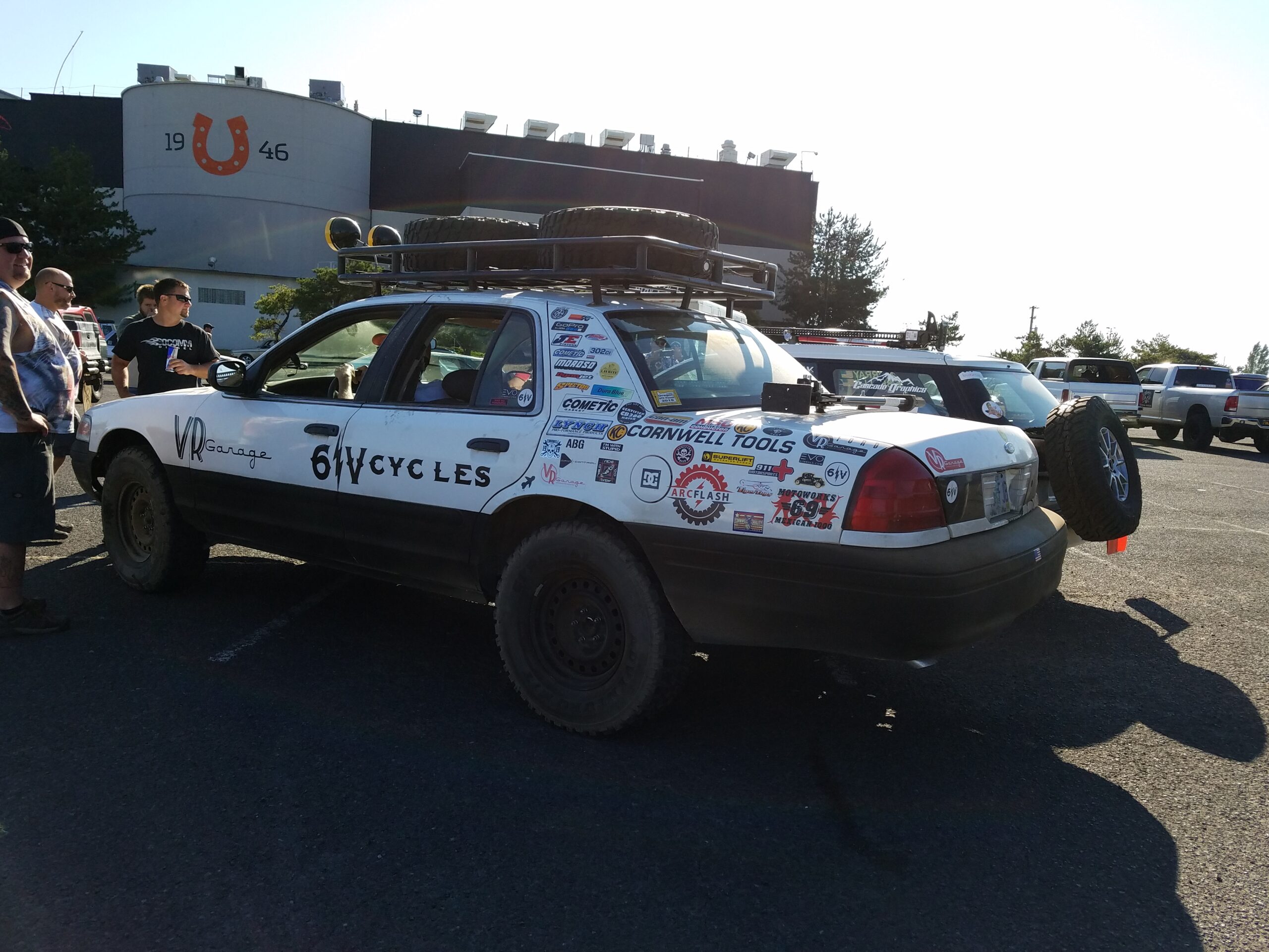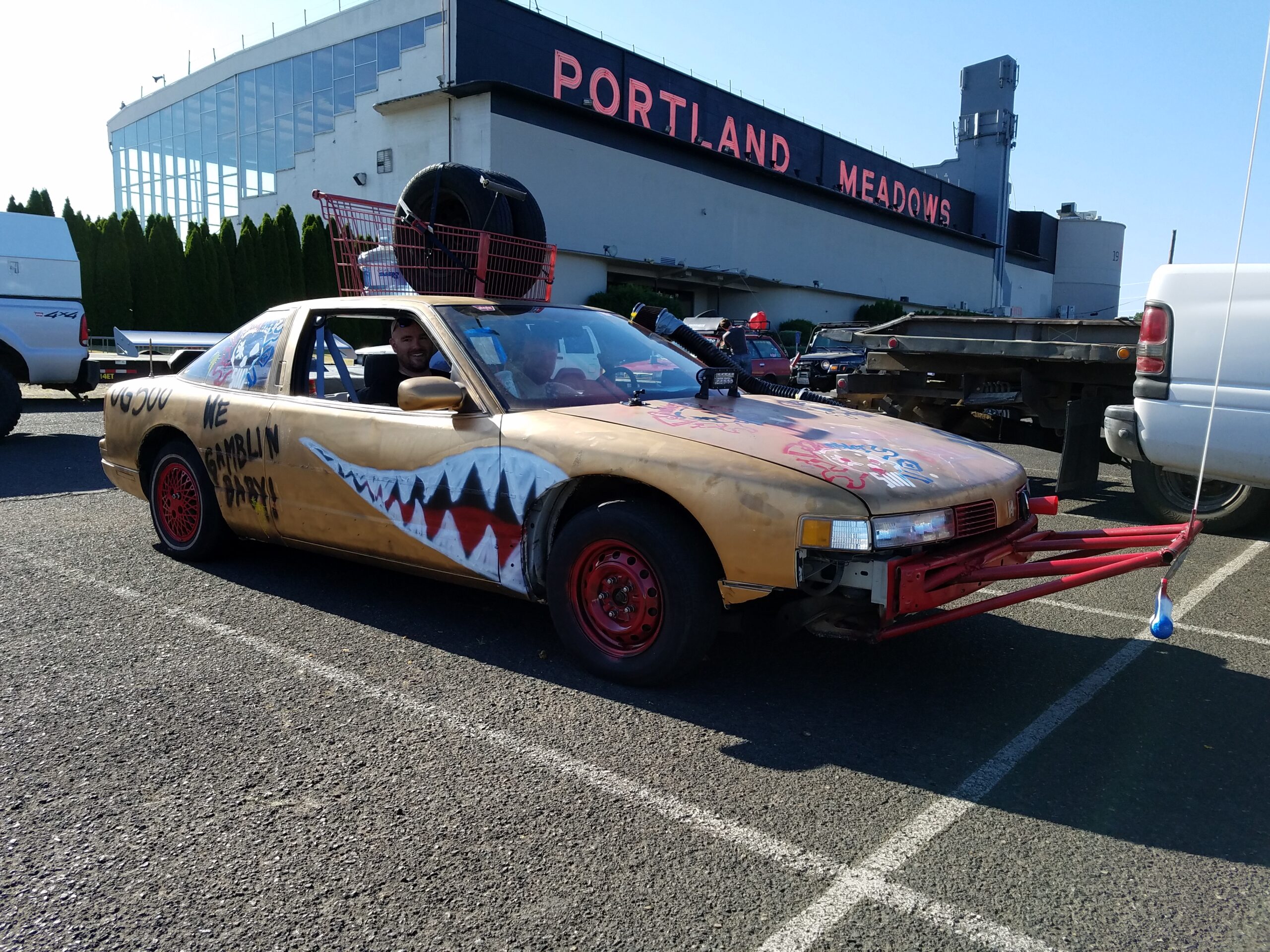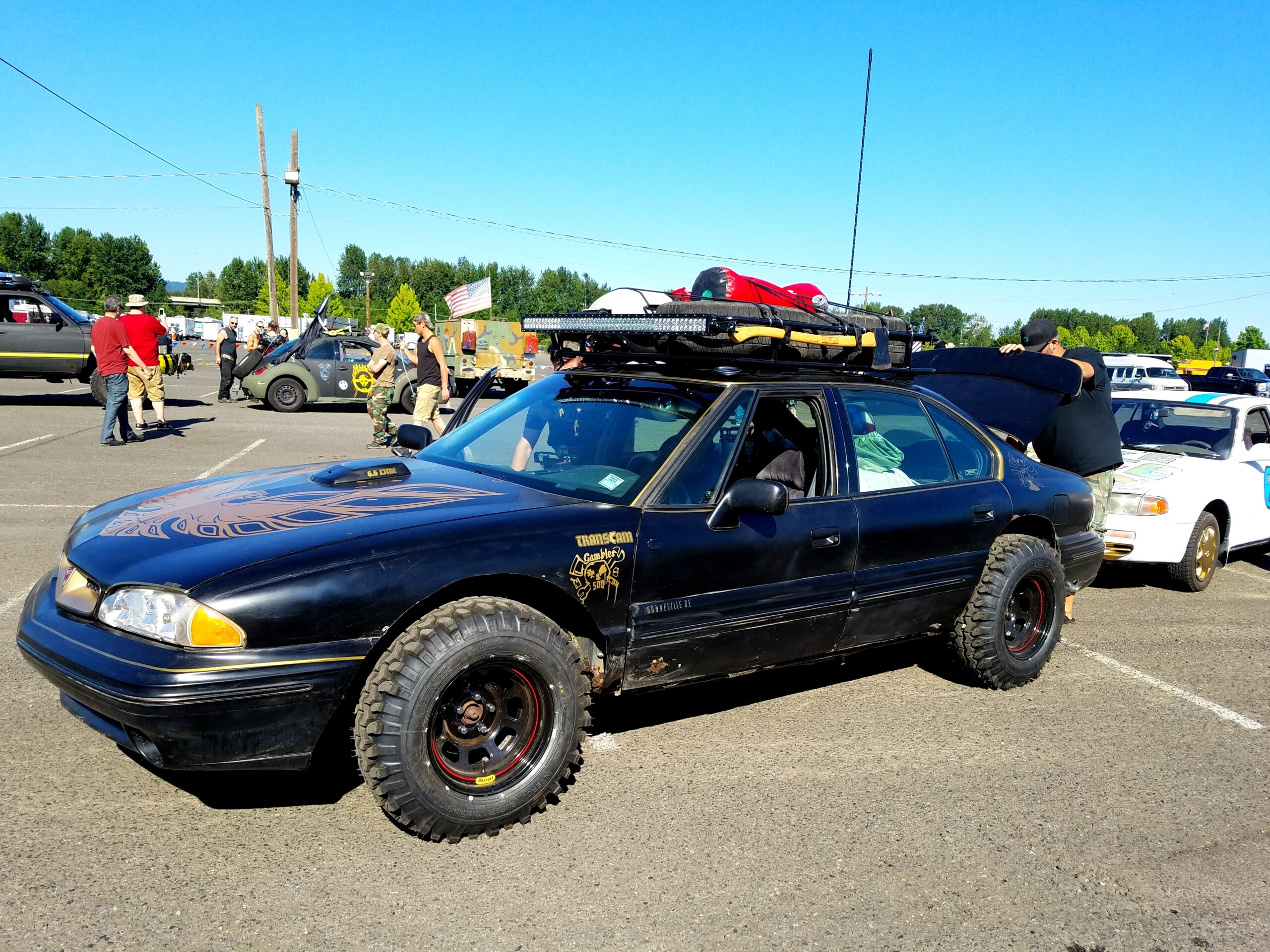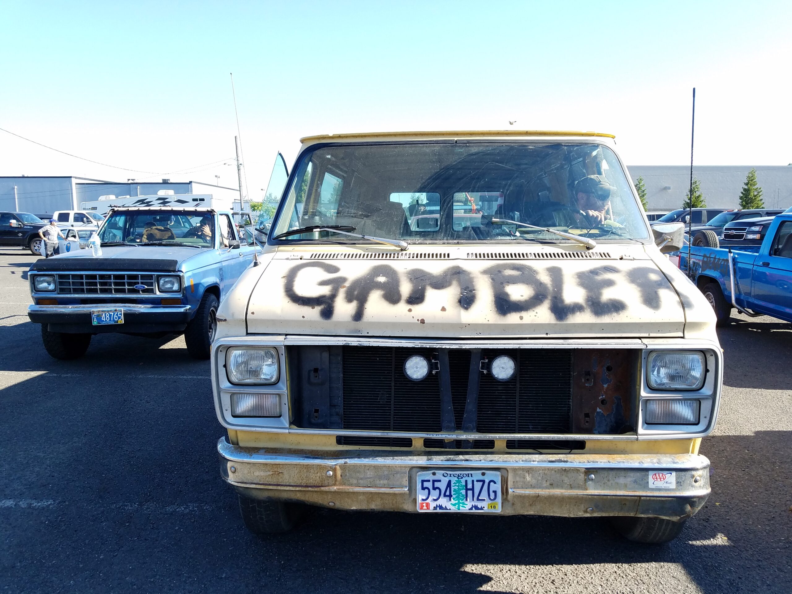 The start of the rally was a symphony of sputtering exhausts pipes, squeaky fan belts, and rough idling engines. Hood slams echoed as gamblers pushed their heaps to the start line. This was the 4th running of the Gambler. In previous years attendance was small. Around 40 teams entered last year, but thanks to social media a record setting 300 was expected to show up at the Portland Meadows horse track to start gambling. We arrived at 8 am and saw that over 700 teams had showed up! Unpresented and unplanned.