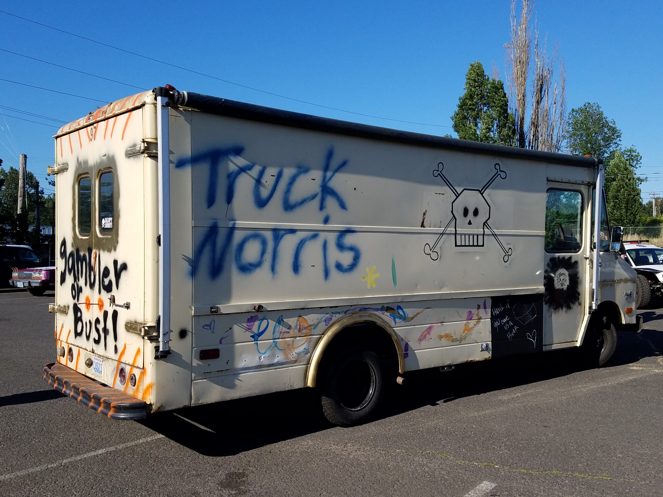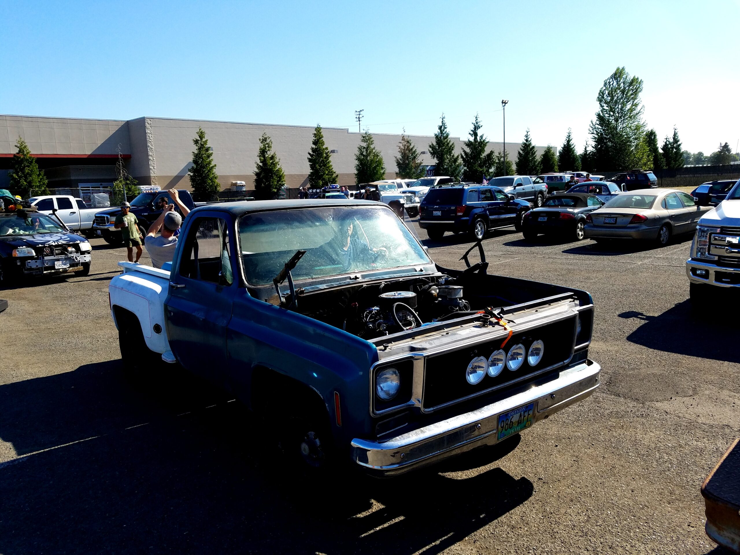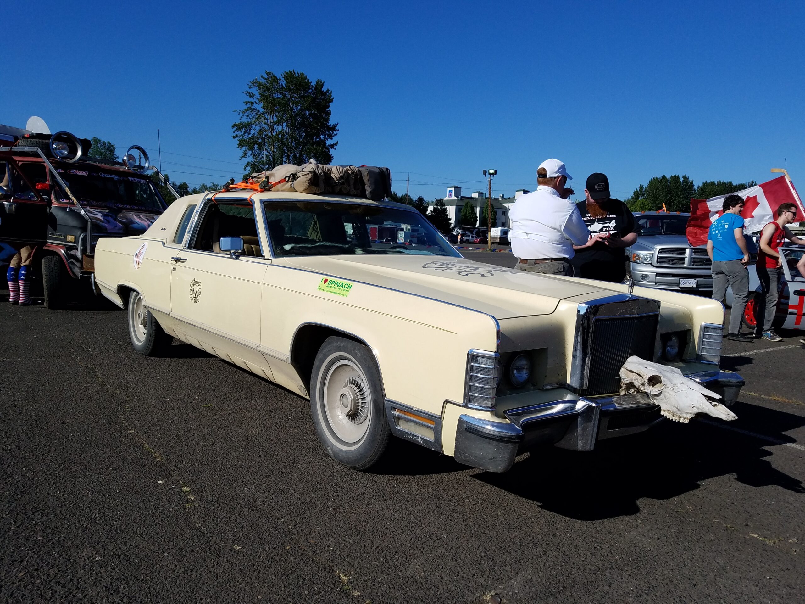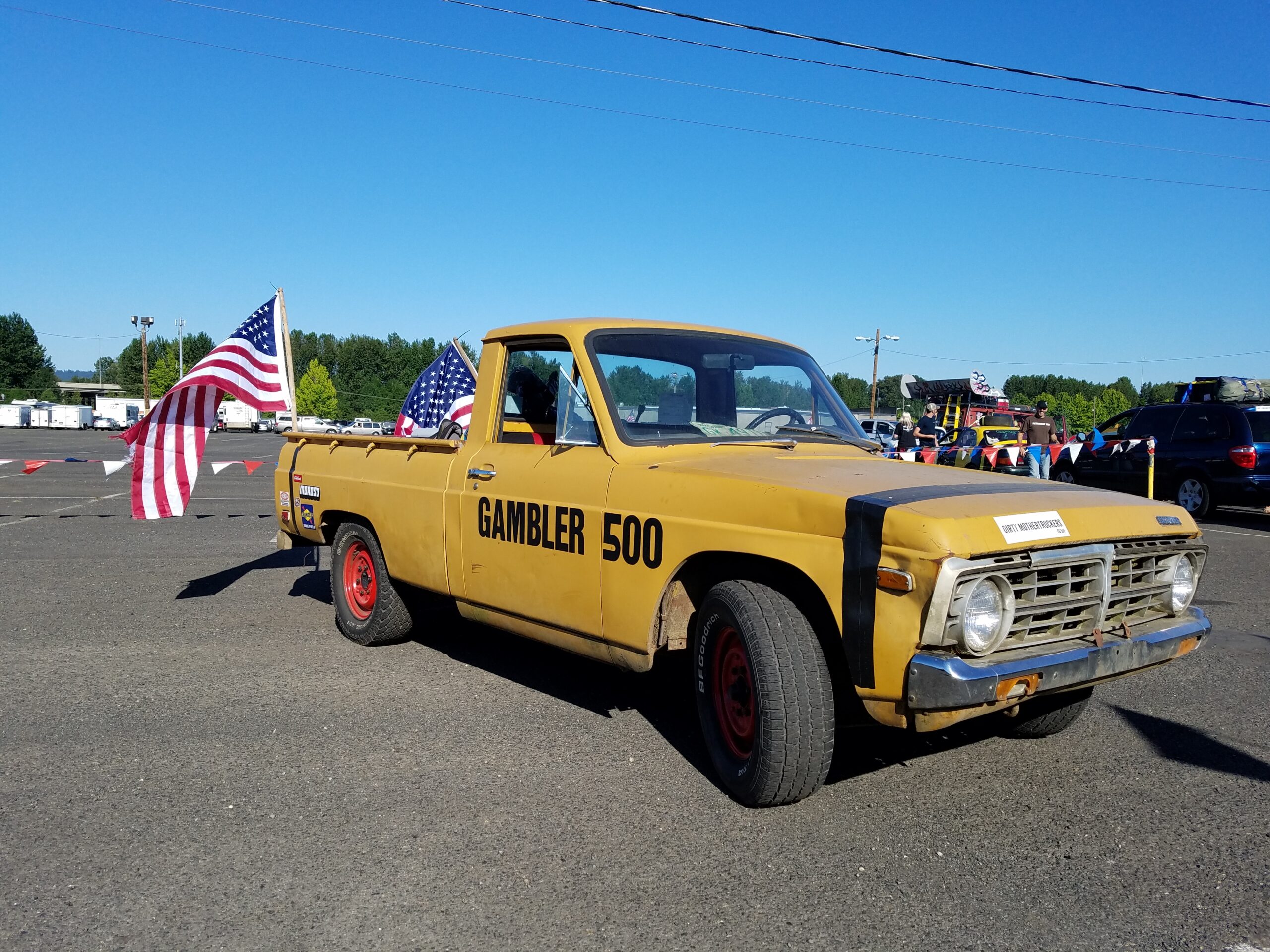 The start of the rally was a symphony of sputtering exhausts pipes, squeaky fan belts, and rough idling engines. Hood slams echoed as gamblers pushed their heaps to the start line. This was the 4th running of the Gambler. In previous years attendance was small. Around 40 teams entered last year, but thanks to social media a record setting 300 was expected to show up at the Portland Meadows horse track to start gambling. We arrived at 8 am and saw that over 700 teams had showed up! Unpresented and unplanned.
