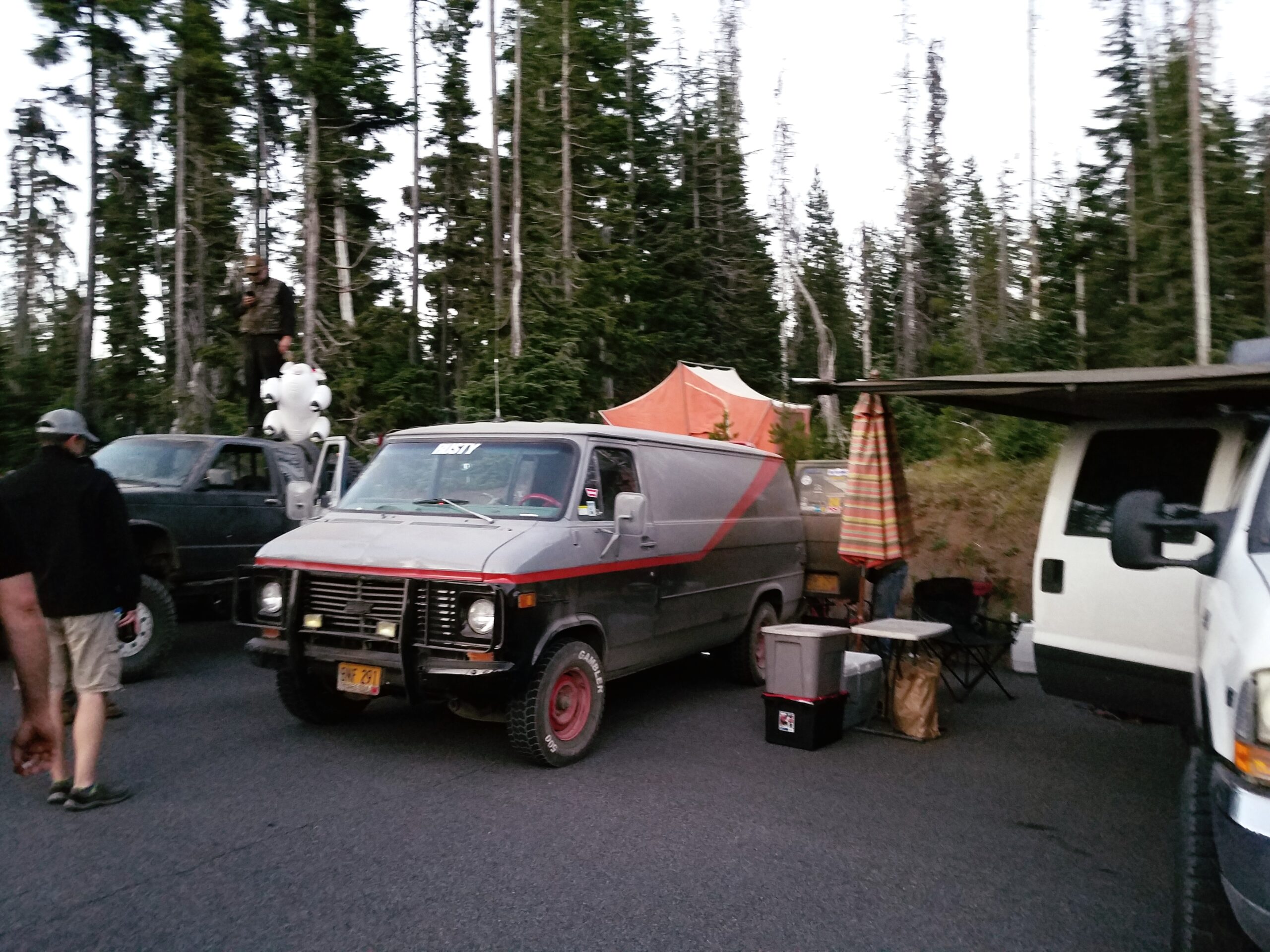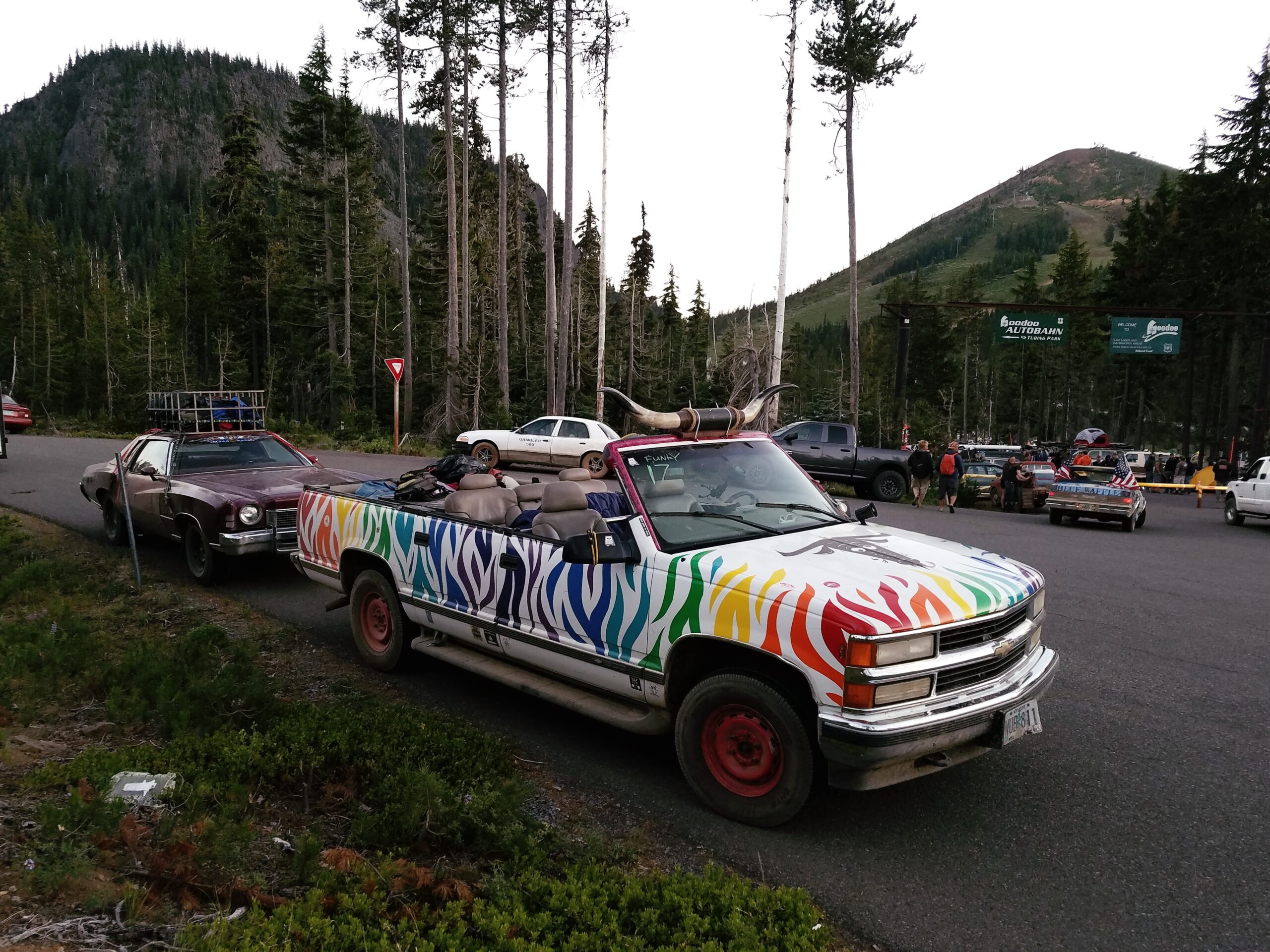 The overnight checkpoint for the rally was a ski lodge near the city of Sister, Oregon, named Hoodoo (Who-doo). By the time the Red Beaver arrived the ski lodge was completely full and we had to park in the street along with several dozen other Gambler teams.