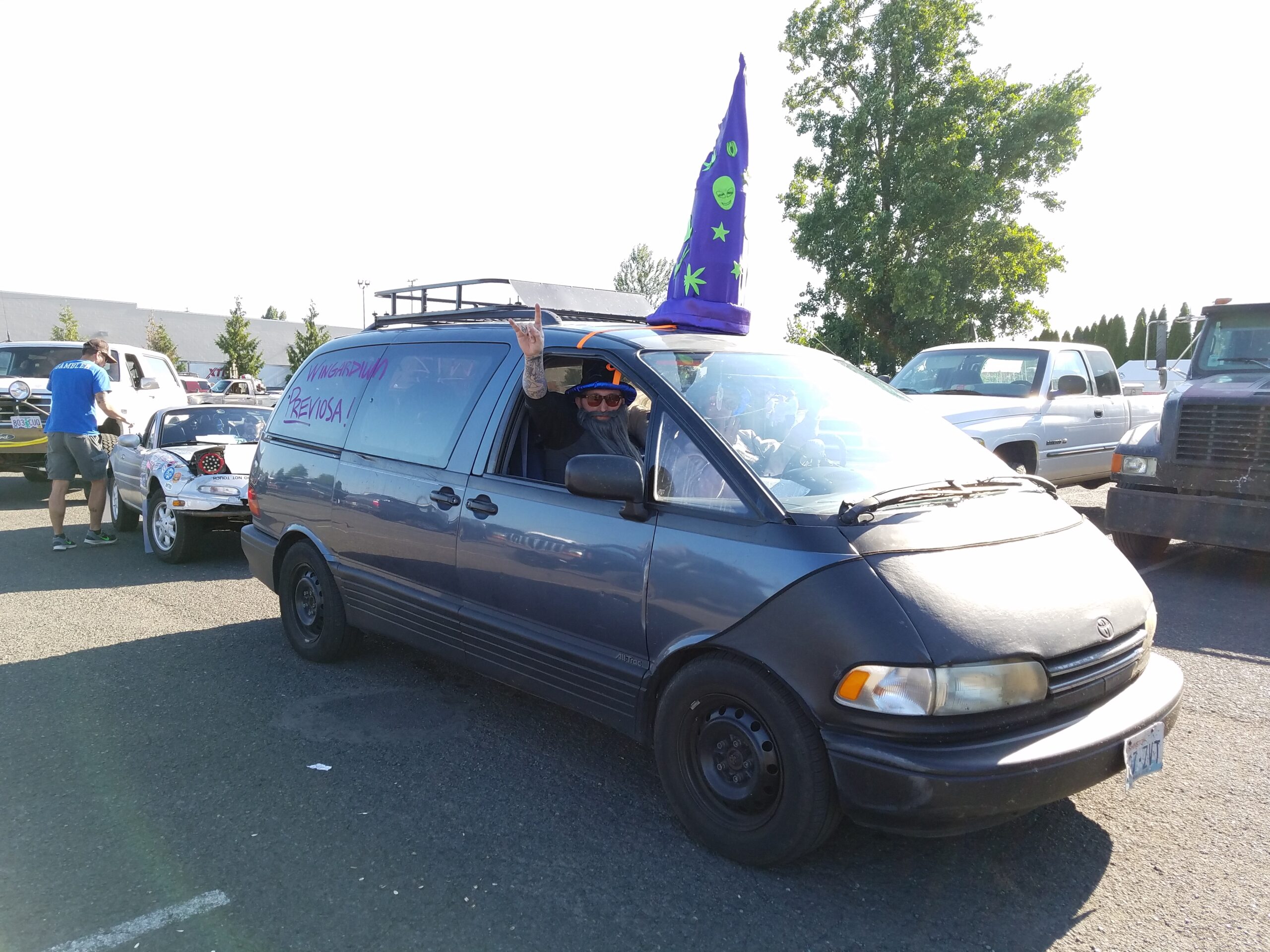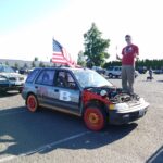 The end of the rally was back at Portland Meadows were it began. All cars were able to cross the finish line and park in the horse track infield to create the most outrageous looking parking lot. Once we were all here the awards were given out. This year’s winner was given to a man who visited all the waypoints in a $500 Honda 500cc motorcycle that he put together days before the rally started.