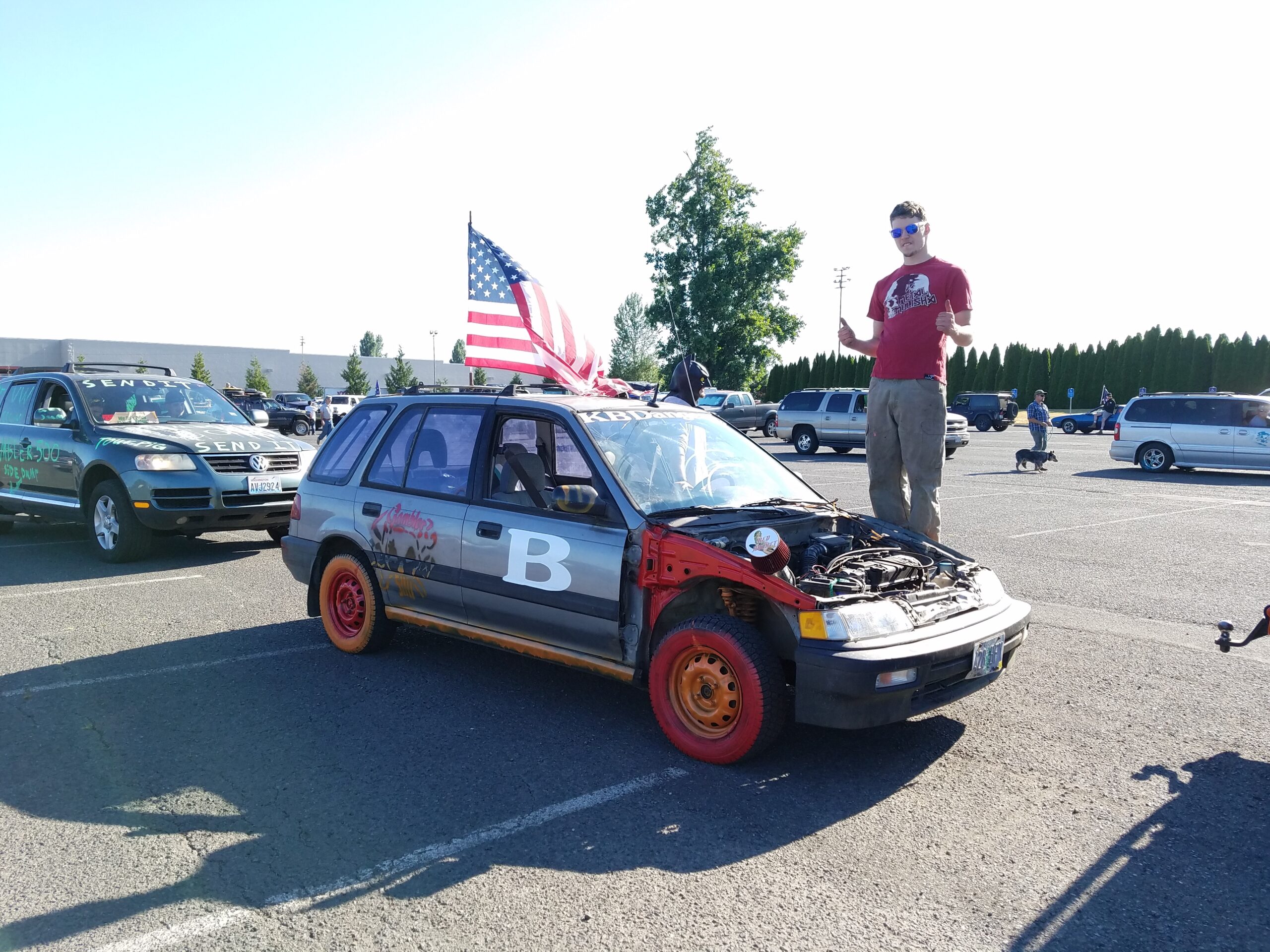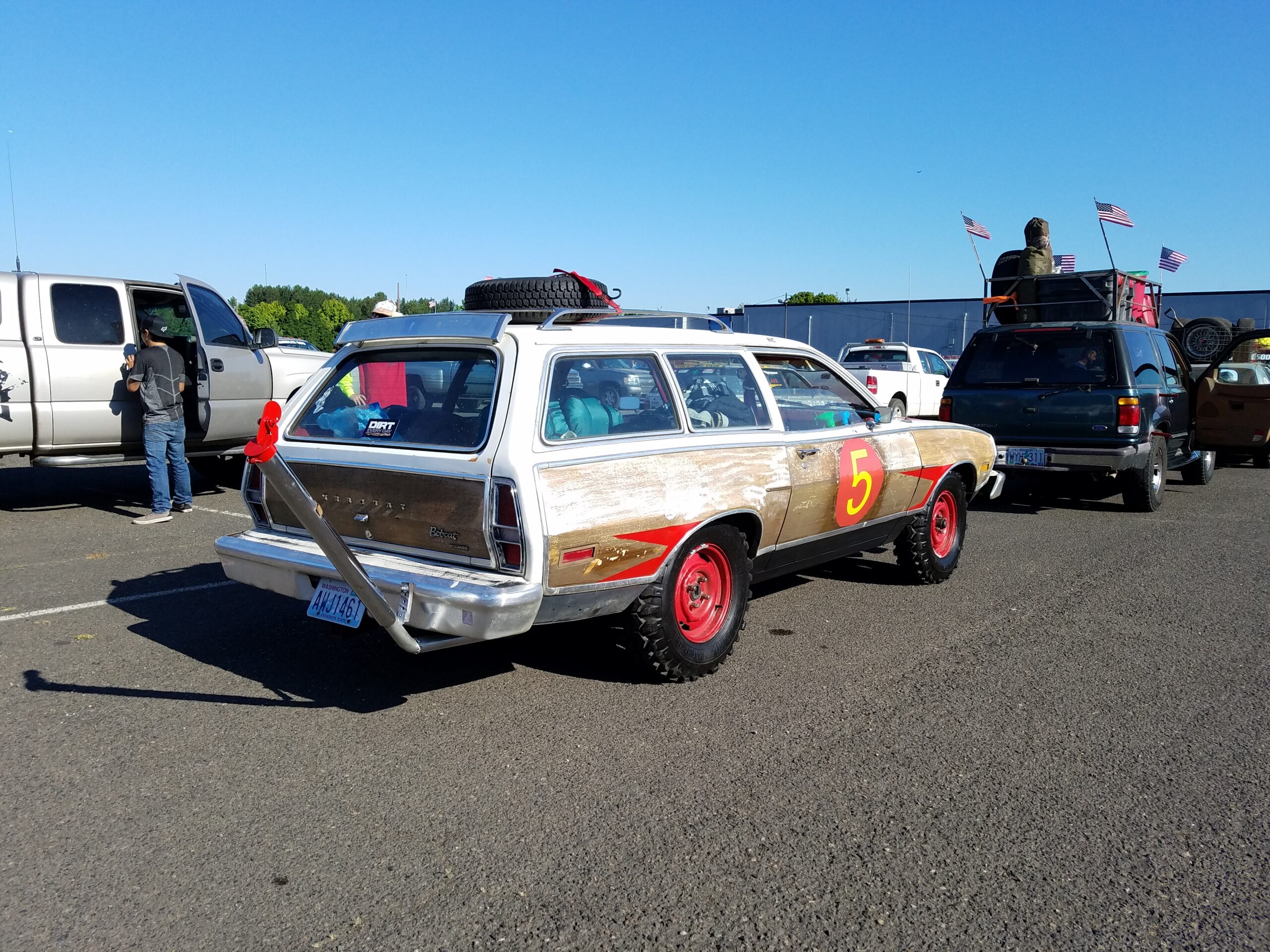 Teams ranged from chump cars and junkers to full builds and customs. Everything on wheels was represented at the event. AMC Eagles, lifted Crown Vics, a JDM Firetruck, 70s land yachts and wagons, limos, Pontiac Fieros, a white hearse, smokey motorcycles, ex-food trucks, vans, muscle cars, Jeeps and Subarus, and a $600 Toyota Prius! Our unofficial celebrity guest was Fred Williams, editor-at large for Peterson’s 4-Wheel & Off-road and host of Dirt Everyday, who showed up in a wicked 4×4 Dodge Tradesman.